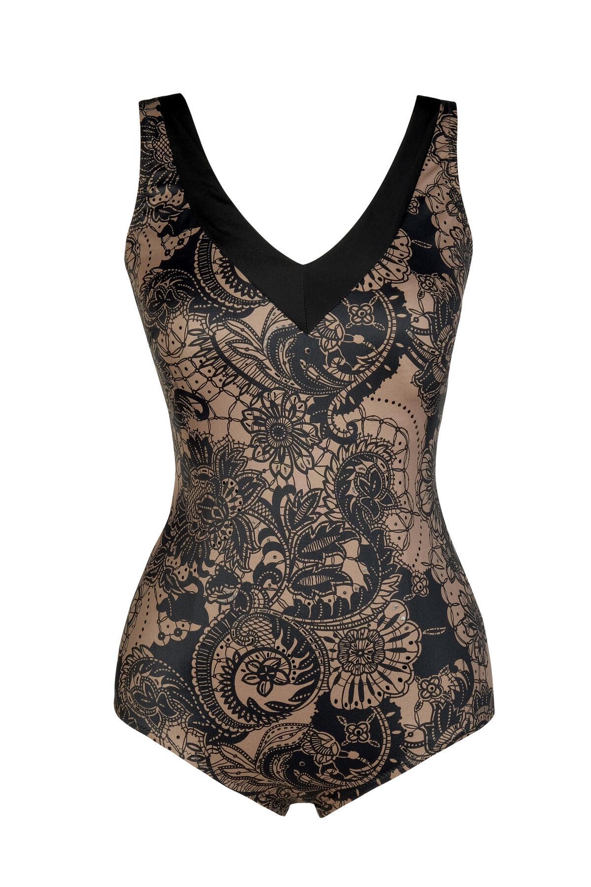Transparan Göğüs Dekolteli Leopar Mayo Transparan Göğüs Dekolteli Leopar Mayo 01-0455-1101 42