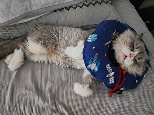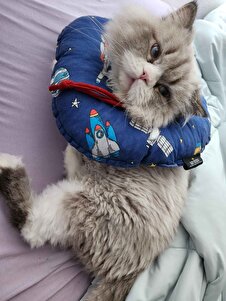 bayıldık keşke daha önce haberim olsaydı da alsaydım, oğlum mantar tedavisi görüyor yüzünü kaşımaması gerekiyor plastik boyunluk takmıştık ilk başta boynu taşıyamadı aşırı stres yaptı sürekli yatıyordu, geldiği gibi bu boyunluğu taktım hiç çıkartmak istemedi özgürce koştu mamasını rahatça yedi çok mutlu şuan. kafasına arka ayağı yetişemiyor ama ayağını ağzıyla ısırıp kaşıyabiliyor onu da farkettikçe engelliyorum. Yorumu güncelliyorum; mantar sorunumuz hala geçmedi, yorumuma istinaden satıcı hediye yeni tasarım boyunluk gönderme teklifinde bulundu. Gerçektensatıcıdan aşırı memnun kaldım, gönderdikleri tasarım boyunlukla da aşırı rahat ettik. Boyunluktan bahsetmek istiyorum, iç kısmı aynı ancak dış kısmına da bir ip eklenmiş bu ip büzülerek diğer plastik boyunluk gibi öne doğru sıkışmasını sağlıyor. 10 puan olsa 10 puan verirdim bayıldıııımmm.