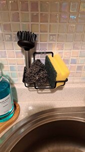 Yapışkanlı Kancalı Katı Sabunluk ve Bulaşık Süngerlik Düzenleyici Raf Siyah Yapışkanlı Kancalı Katı Sabunluk ve Bulaşık Süngerlik Düzenleyici Raf Siyah yy10982 تک سایز