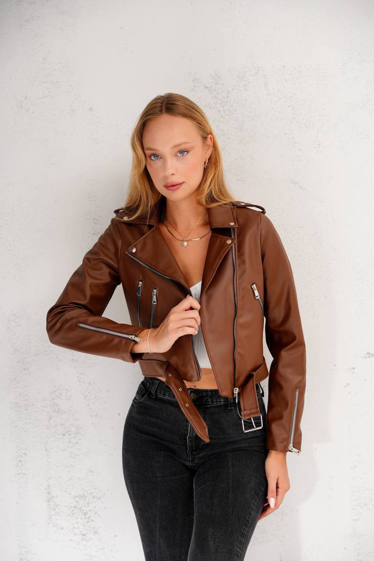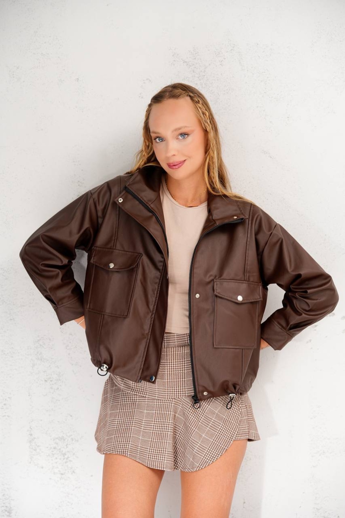 Kadın Taba Balon Kol Oversize Deri Ceket Kadın Taba Balon Kol Oversize Deri Ceket overderi L