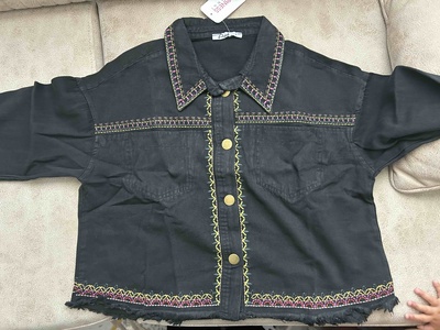 Kadın Siyah Nakışlı Püsküllü Oversize Denim Ceket SA00018 Kadın Siyah Nakışlı Püsküllü Oversize Denim Ceket SA00018 40