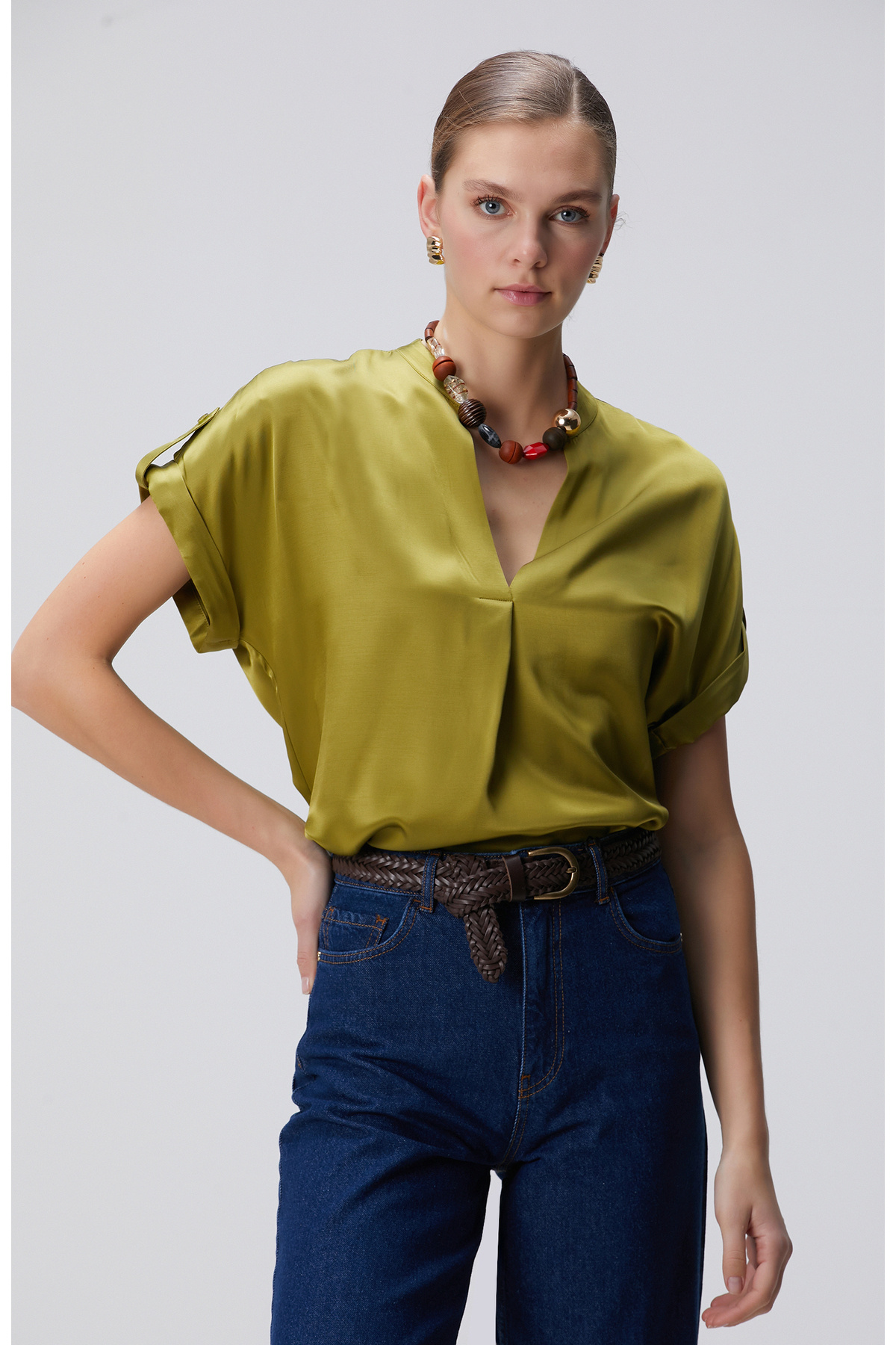 Kadın Yağ Yeşili Polo Yaka Örme Krinkıl Bluz DD01299 Kadın Yağ Yeşili Polo Yaka Örme Krinkıl Bluz DD01299 42