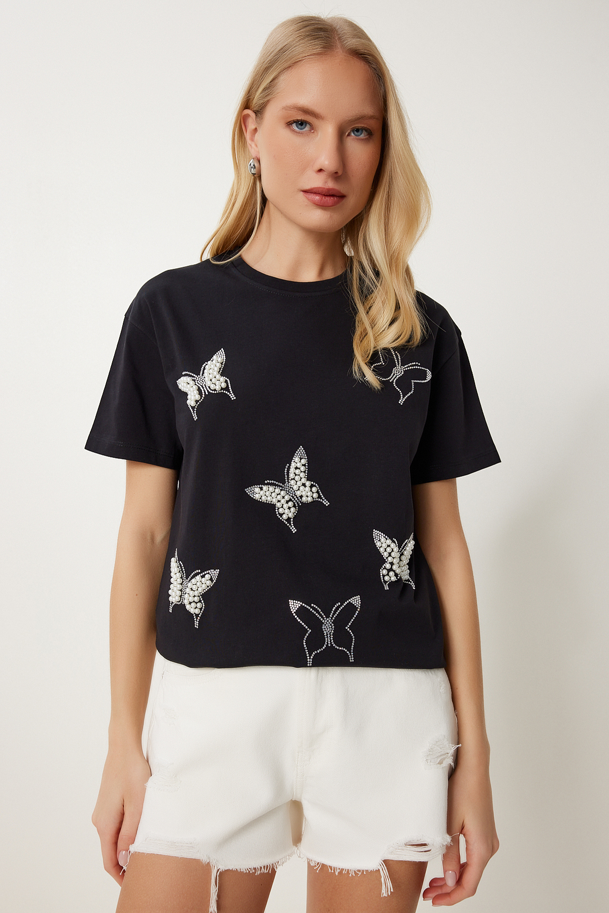 Kadın Beyaz İncili Çiçek Detaylı Örme T-Shirt NJ00146 Kadın Beyaz İncili Çiçek Detaylı Örme T-Shirt NJ00146 40