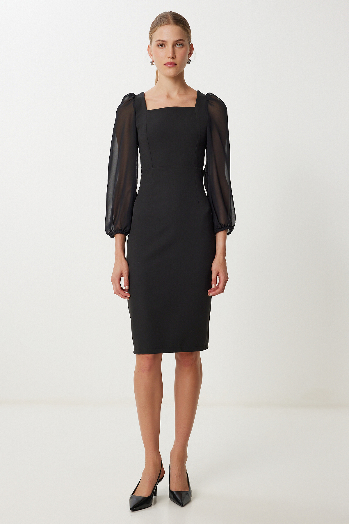 Kadın Siyah Kemerli Büzgülü Saran Örme Elbise DE00031 Kadın Siyah Kemerli Büzgülü Saran Örme Elbise DE00031 40