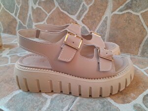 Kemer Detaylı Dolgu Topuklu Çift Tokalı Kadın Nude Sandalet Yazlık Ayakkabı Kemer Detaylı Dolgu Topuklu Çift Tokalı Kadın Nude Sandalet Yazlık Ayakkabı ZA803 40