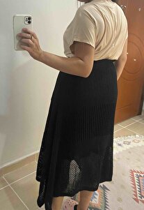 Kadın Asimetrik Kesim Ajurlu Düz Renk Triko Etek Kadın Asimetrik Kesim Ajurlu Düz Renk Triko Etek 4003ELSH7098 2