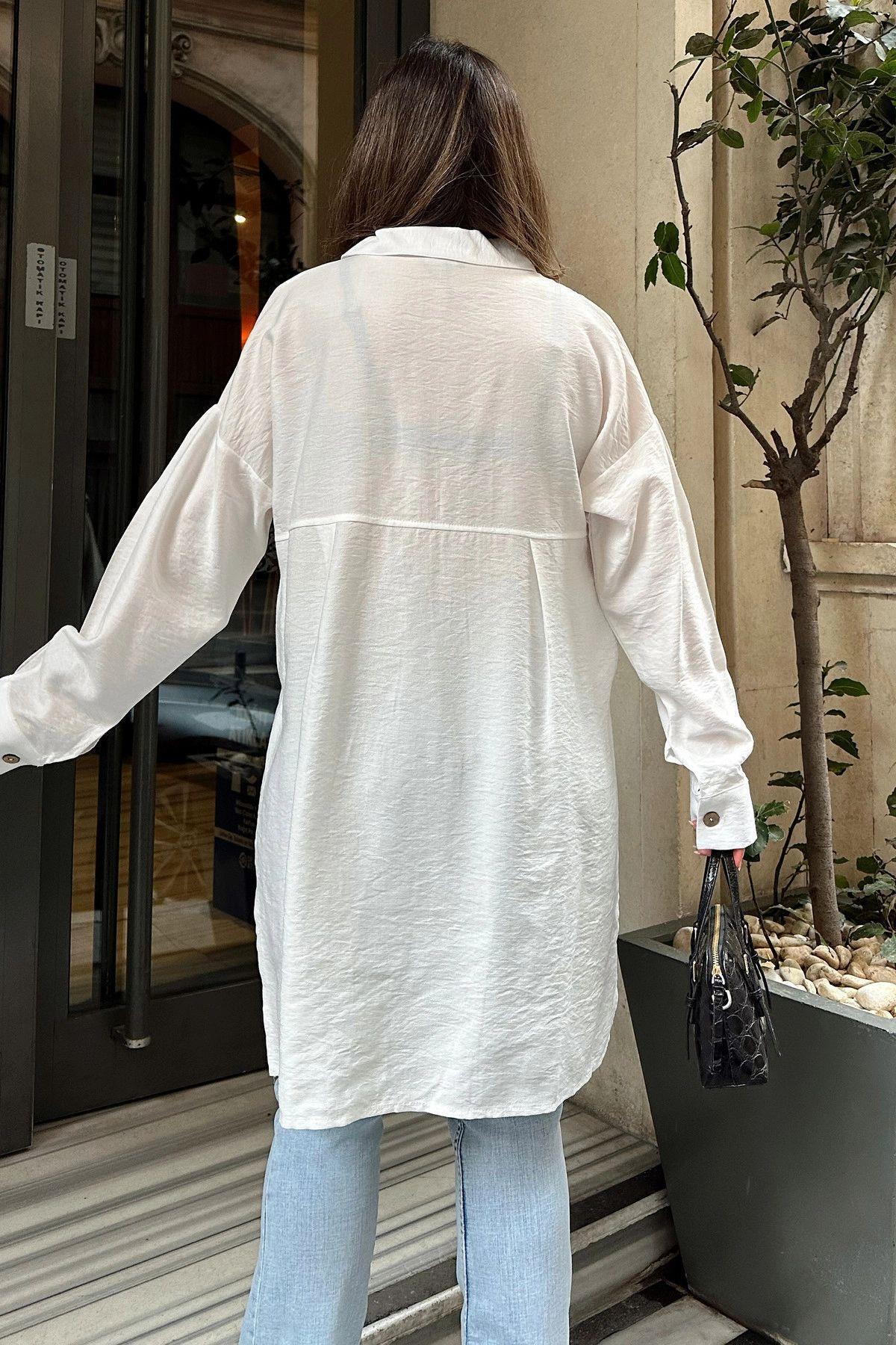 Kadın beyaz Balon Kol, Pileli, Yırtmaçlı, Oversize, Keten Tunik Gömlek Kadın beyaz Balon Kol, Pileli, Yırtmaçlı, Oversize, Keten Tunik Gömlek NY3524 42