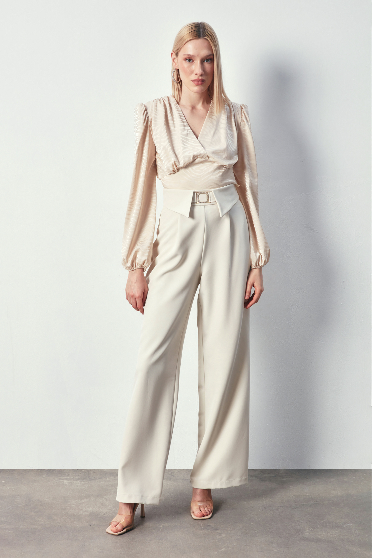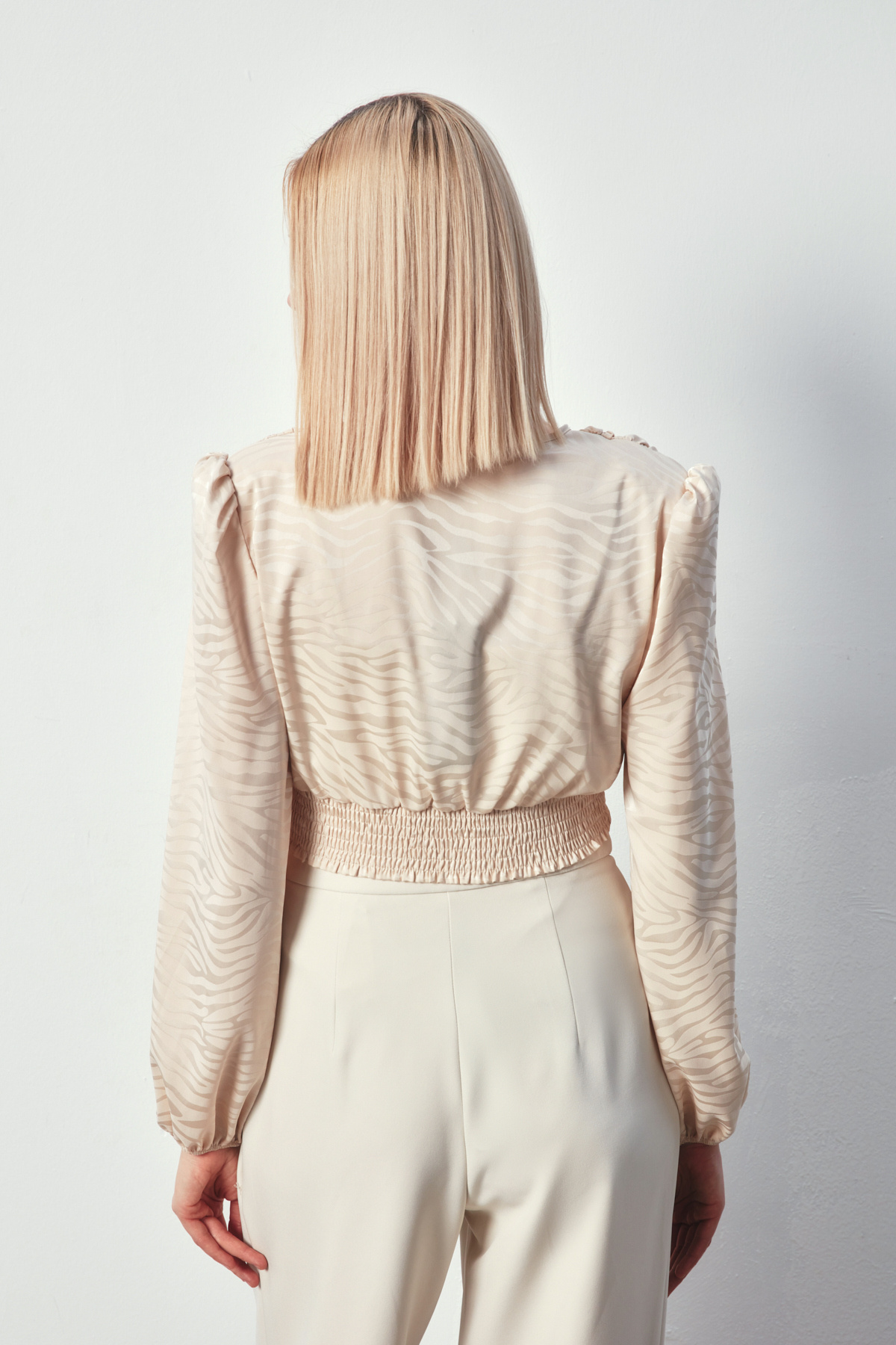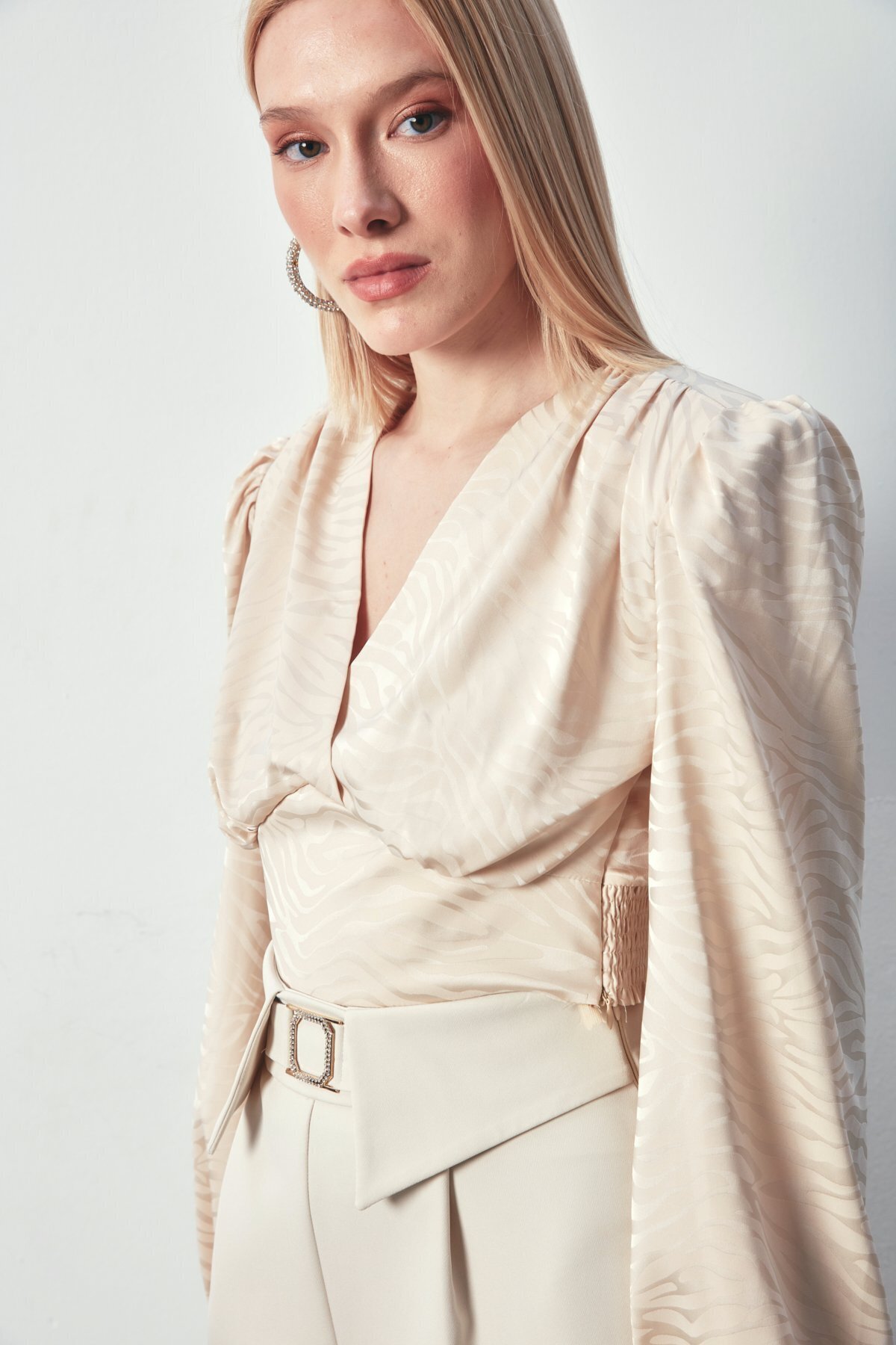 Desenli Kruvaze Saten Bluz - Bej Desenli Kruvaze Saten Bluz - Bej STN139KBL1418 42