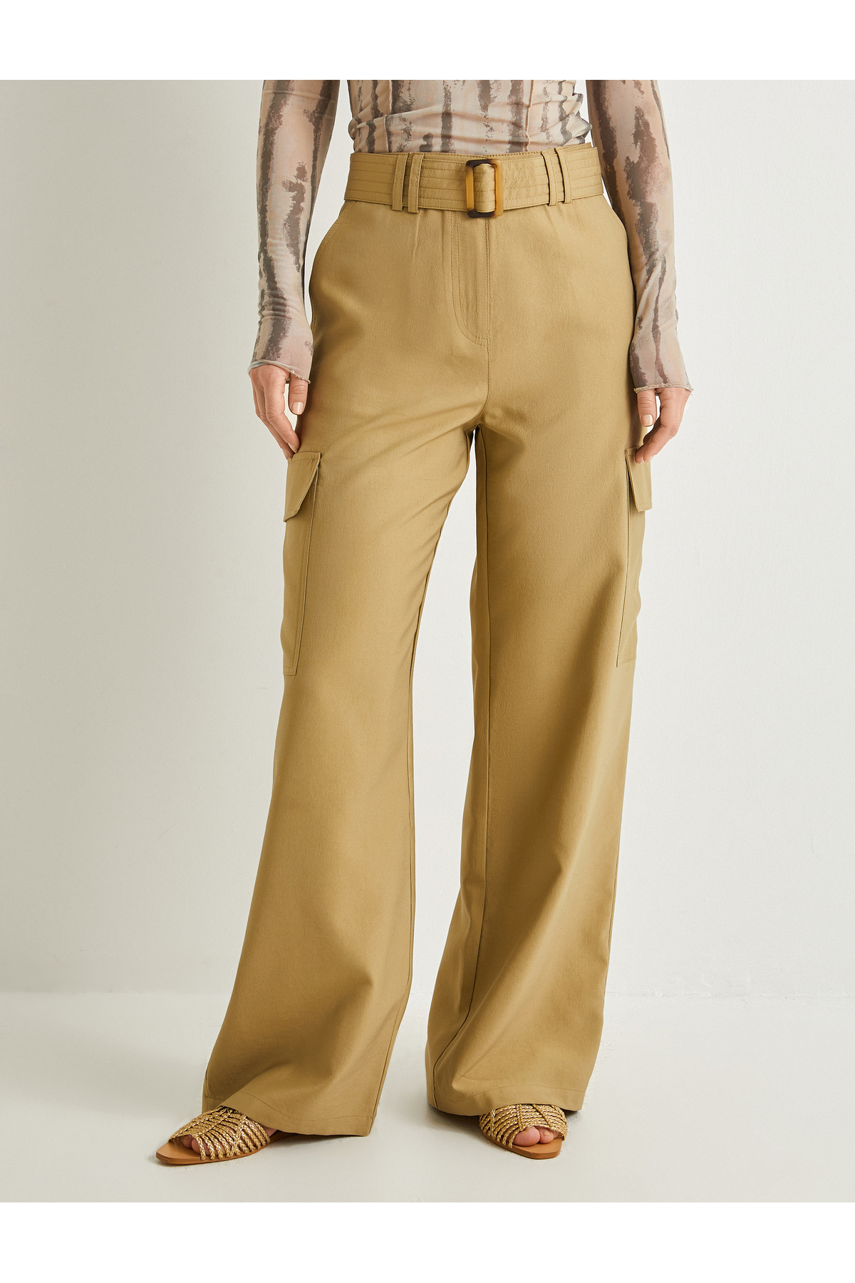 Kargo Pantolon Düz Paça Cepli Kemer Detaylı Normal Bel Kargo Pantolon Düz Paça Cepli Kemer Detaylı Normal Bel 4SAK40277PW 44