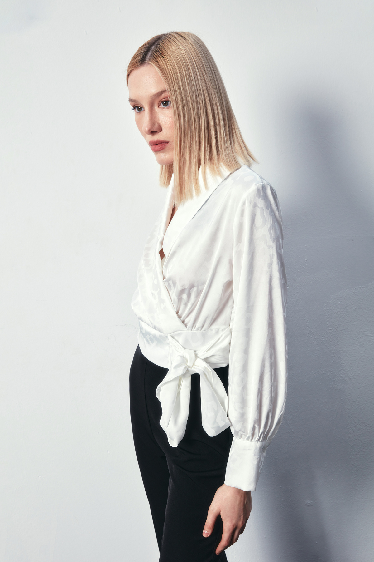 Yan Kuşaklı Saten Bluz - Ekru Yan Kuşaklı Saten Bluz - Ekru STN139KBL1419 42