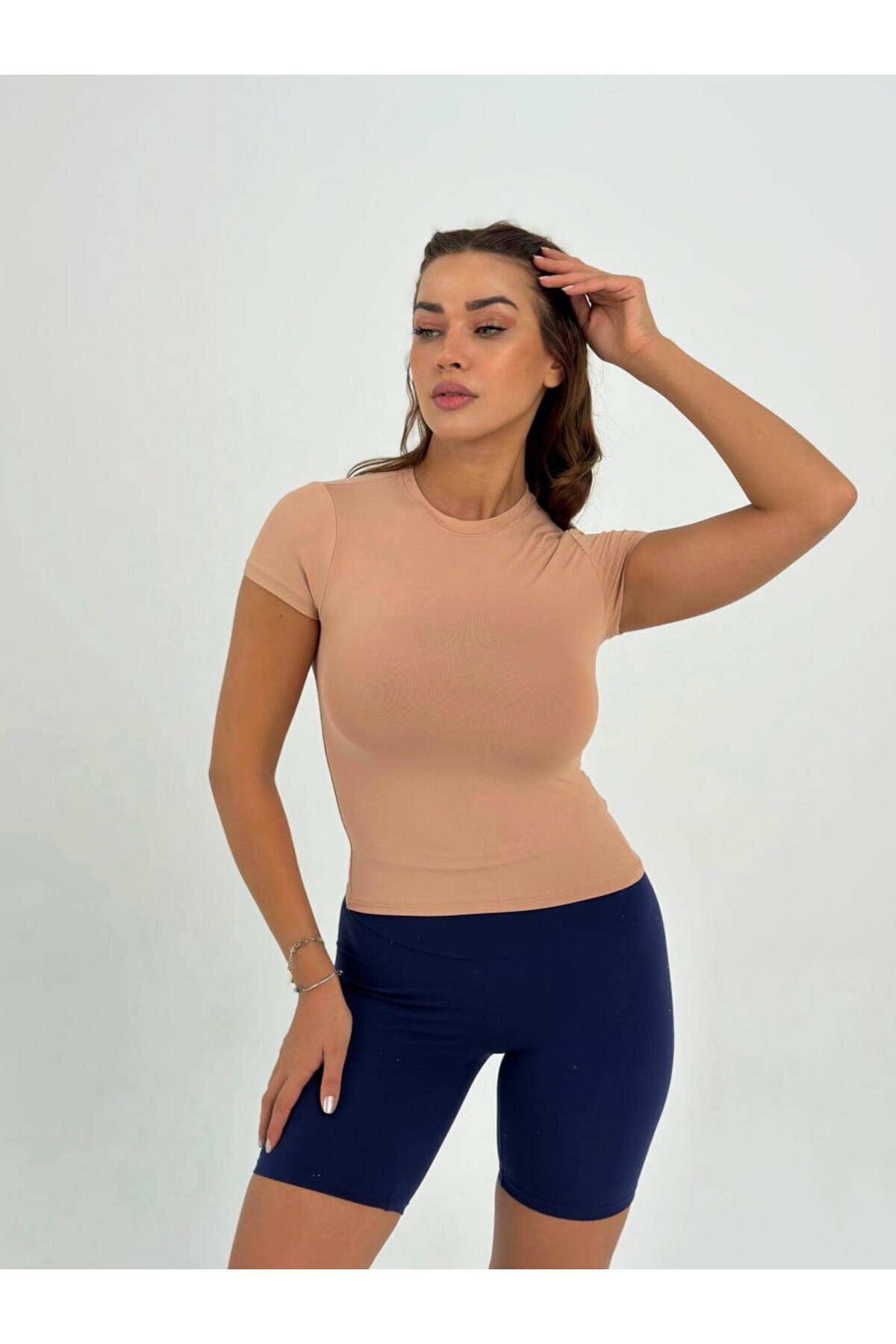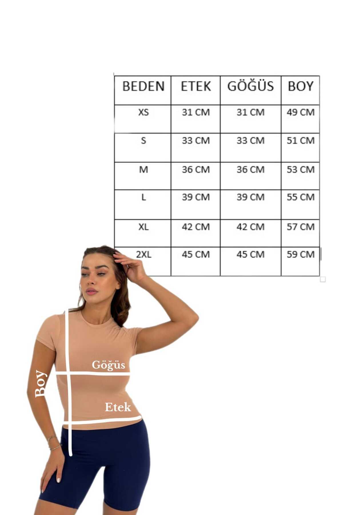 Kadın T-shirt Vücuda Oturan Crop Kadın T-shirt Vücuda Oturan Crop nes82 XL