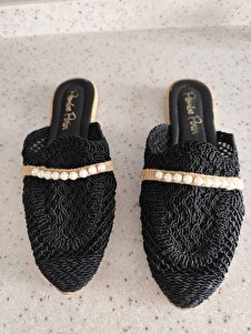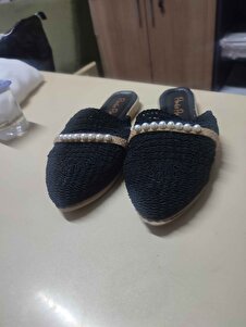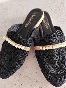Kadın Siyah Dantel İşlemeli İnci Tokalı Ev Terliği Rahat Taban Dış Mekan Terliği Kadın Siyah Dantel İşlemeli İnci Tokalı Ev Terliği Rahat Taban Dış Mekan Terliği 001-3-24 40