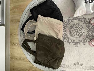 Haki Renk Kabartmalı Puf Kumaş Shopper Çanta Haki Renk Kabartmalı Puf Kumaş Shopper Çanta puff تک سایز
