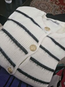 Dore Düğmeli Çizgili Triko Hırka KEMİK SİYAH LPF0003 Dore Düğmeli Çizgili Triko Hırka KEMİK SİYAH LPF0003 Standart