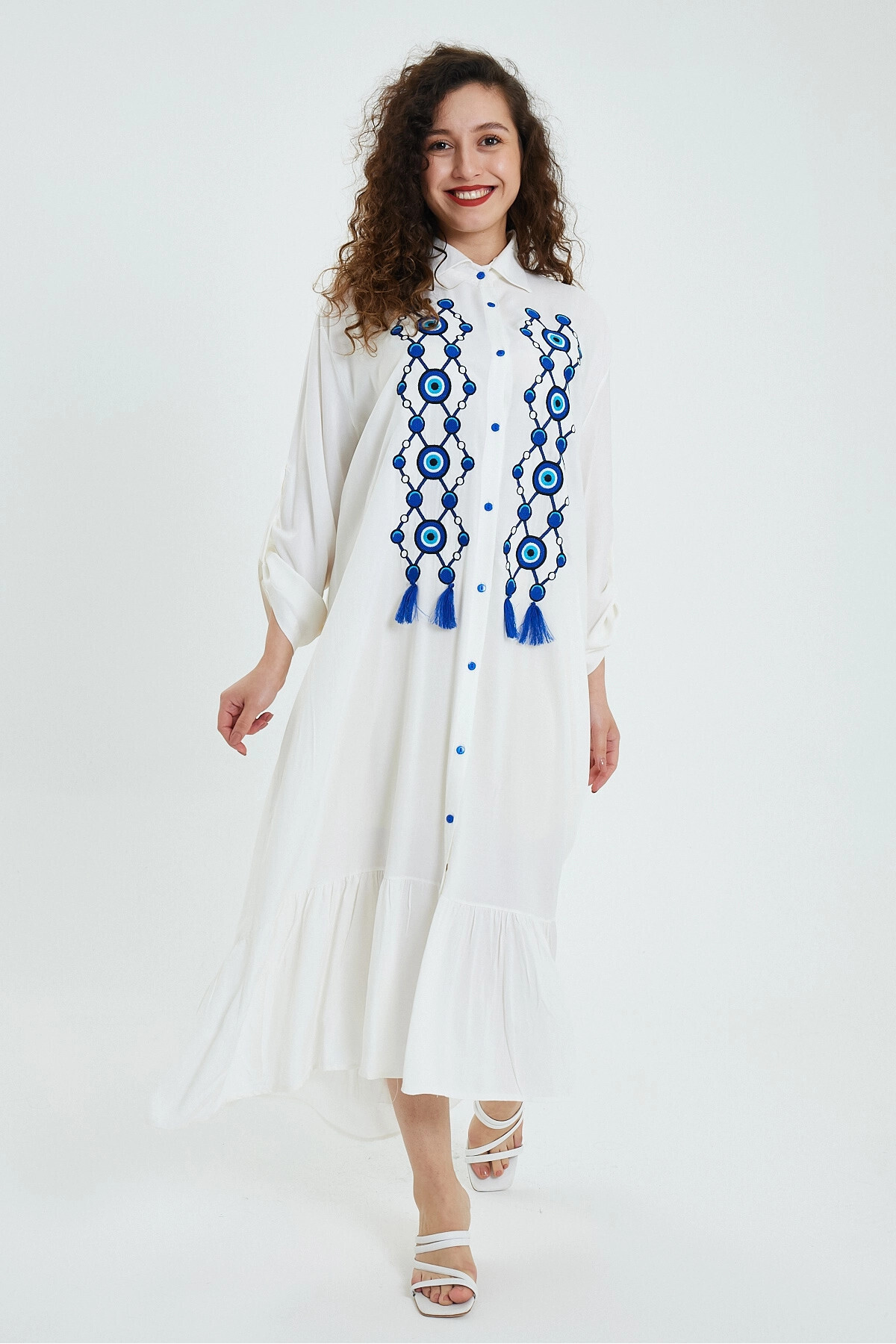 Kadın Maxi Boy Beyaz Nakış Ve Püskül Detaylı Uzun Boy Gömlek Elbise Bcvl-24946 Kadın Maxi Boy Beyaz Nakış Ve Püskül Detaylı Uzun Boy Gömlek Elbise Bcvl-24946 BCVL-24946 52