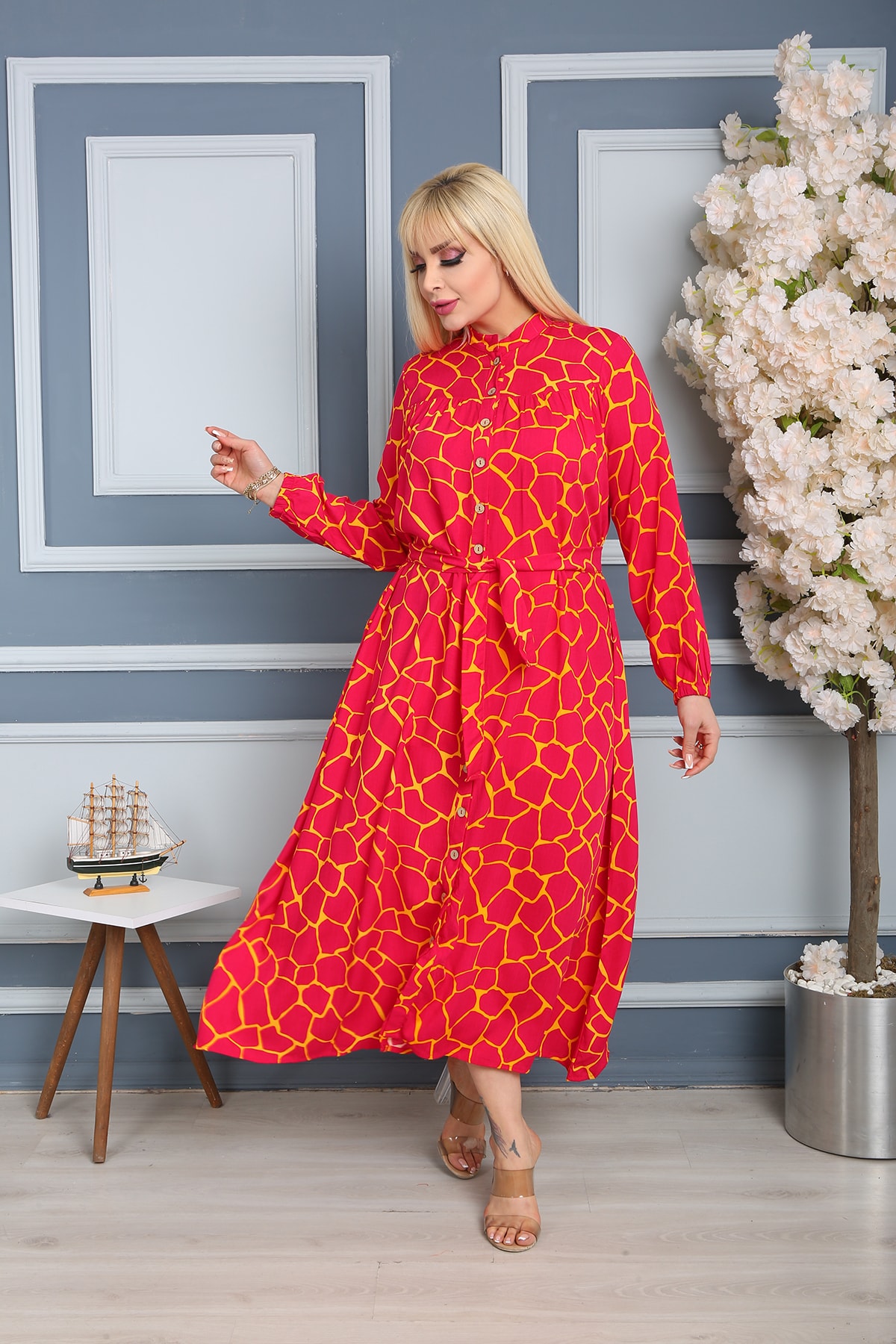 Kadın Maxi Boy Fuşya V Yaka Nakış Işlemeli Renk Bloklu Uzun Boy Gömlek Elbise Bcvl-24958 Kadın Maxi Boy Fuşya V Yaka Nakış Işlemeli Renk Bloklu Uzun Boy Gömlek Elbise Bcvl-24958 BCVL-24958 52