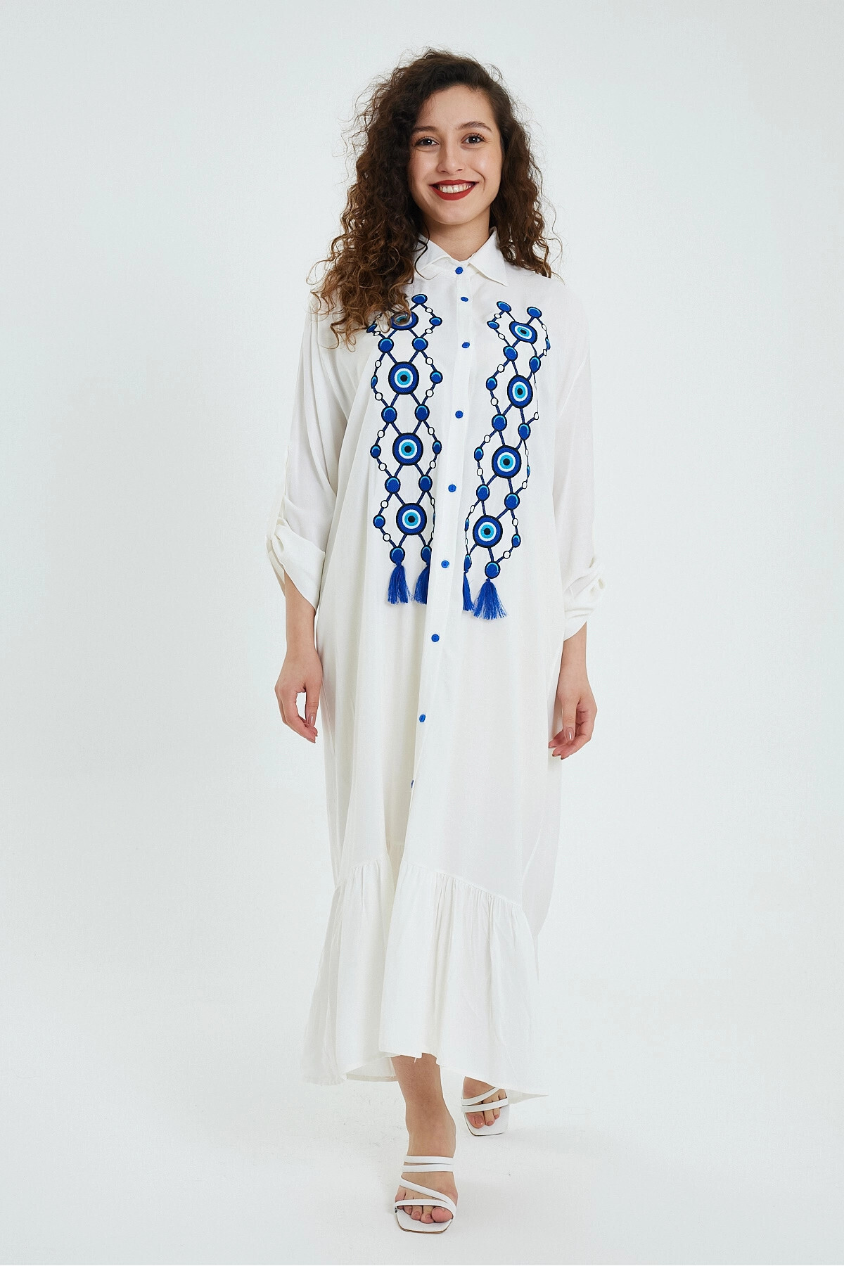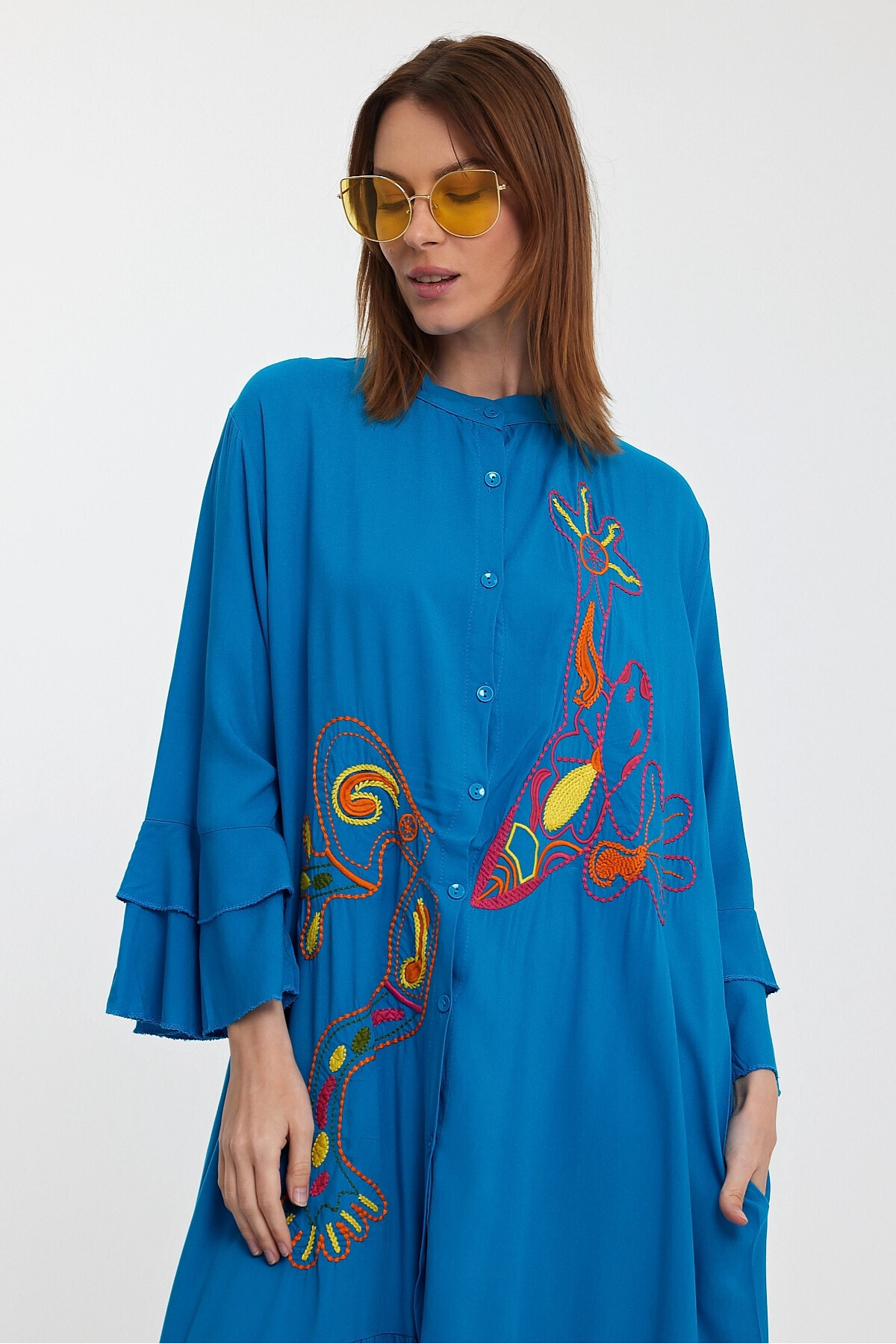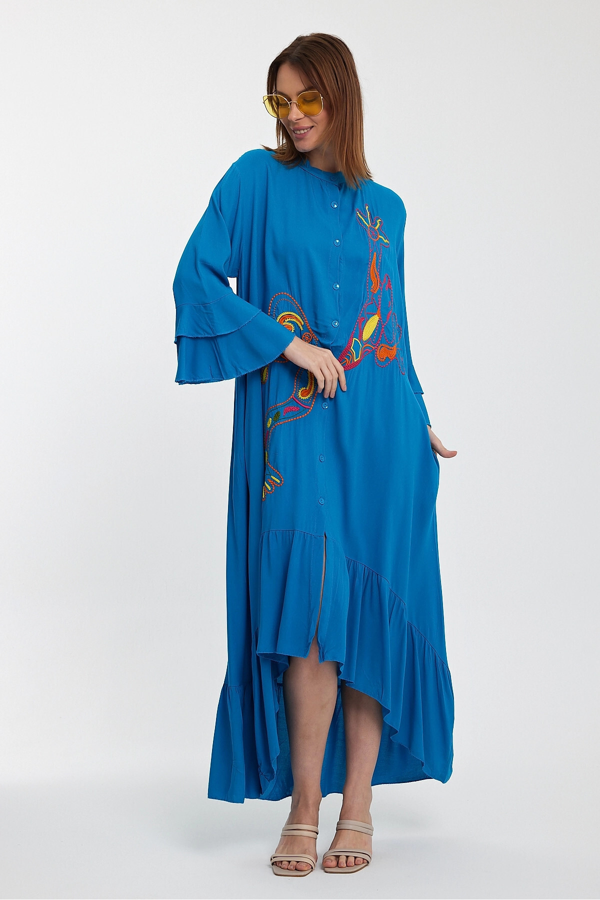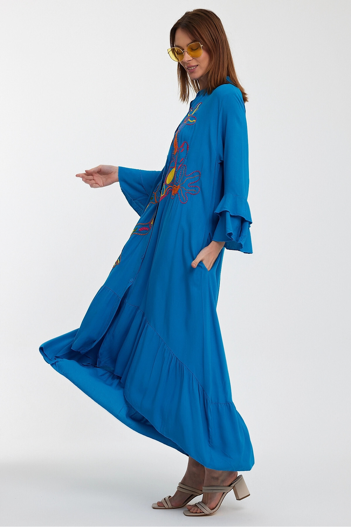 Kadın Maxi Boy Mavi Hakim Yaka Nakış Işlemeli Uzun Boy Dokuma Gömlek Elbise Bcvl-248140 Kadın Maxi Boy Mavi Hakim Yaka Nakış Işlemeli Uzun Boy Dokuma Gömlek Elbise Bcvl-248140 BCVL-248140 52