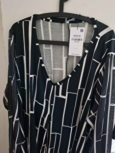 Büyük Beden Uzun Kolları Tül Detaylı Pileli V Yaka Bluz 303055 Büyük Beden Uzun Kolları Tül Detaylı Pileli V Yaka Bluz 303055 BYK-24Y-303055 58-60