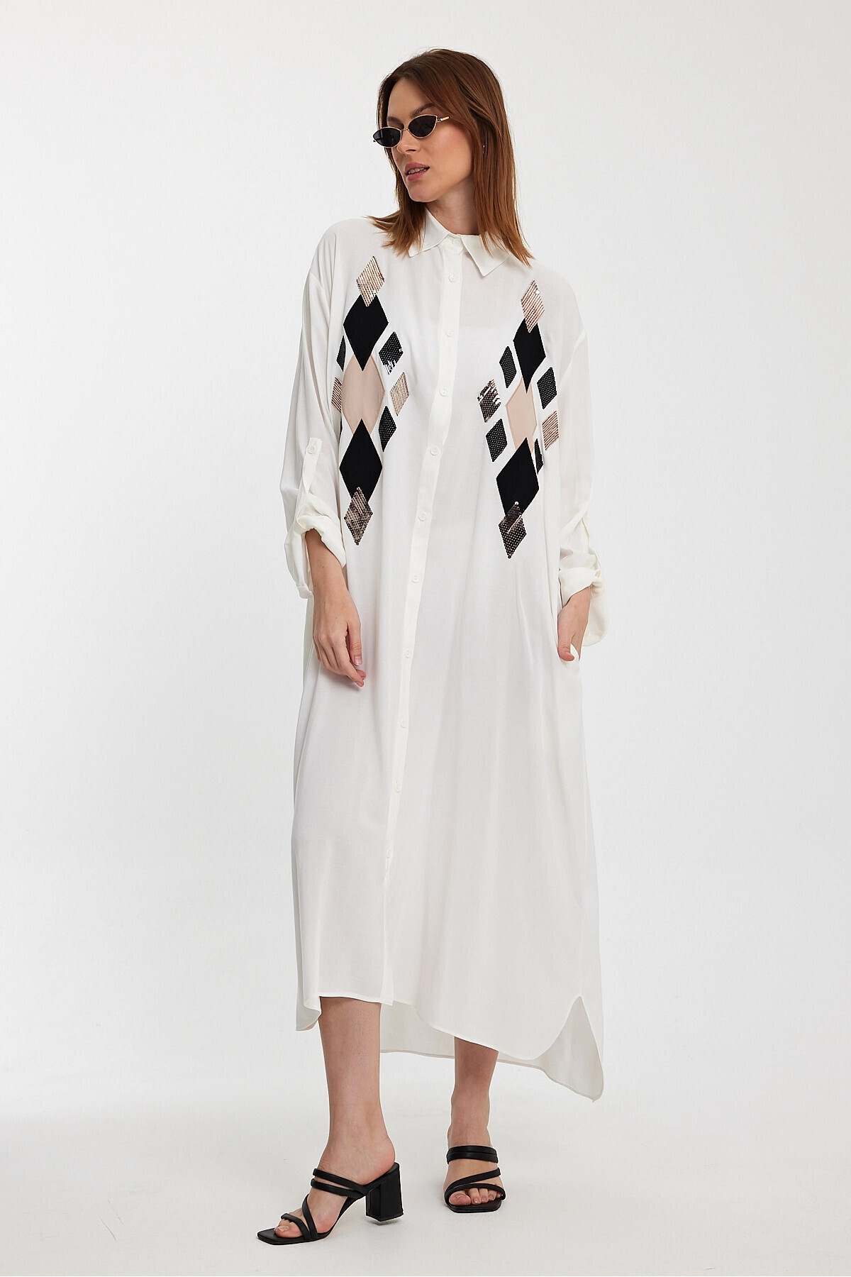 Kadın Maxi Boy Beyaz Payet Işlemeli Uzun Boy Dokuma Gömlek Elbise Bcvl-24943 Kadın Maxi Boy Beyaz Payet Işlemeli Uzun Boy Dokuma Gömlek Elbise Bcvl-24943 BCVL-24943 52