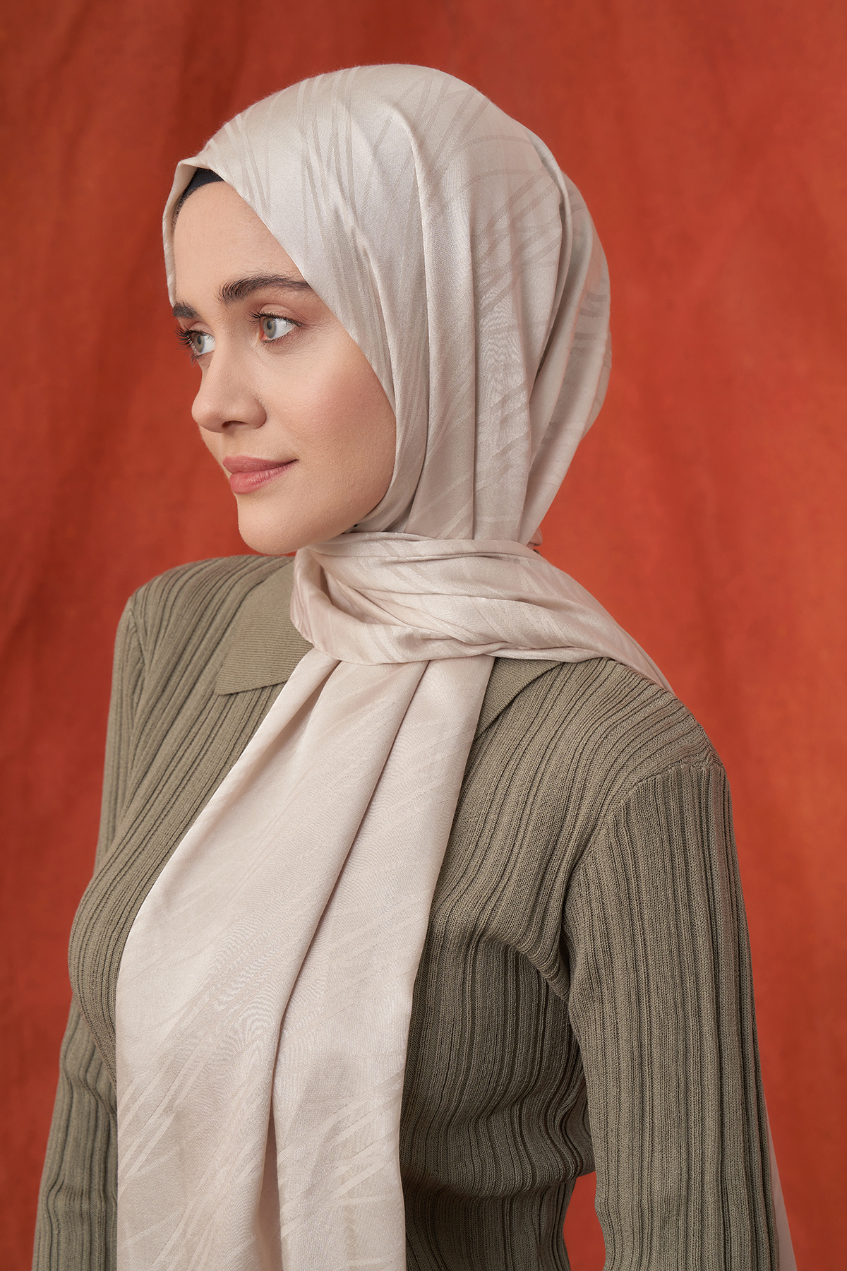İtalyan Jakar Şerit Desen Şal - Pudra İtalyan Jakar Şerit Desen Şal - Pudra 3085 70 x 190
