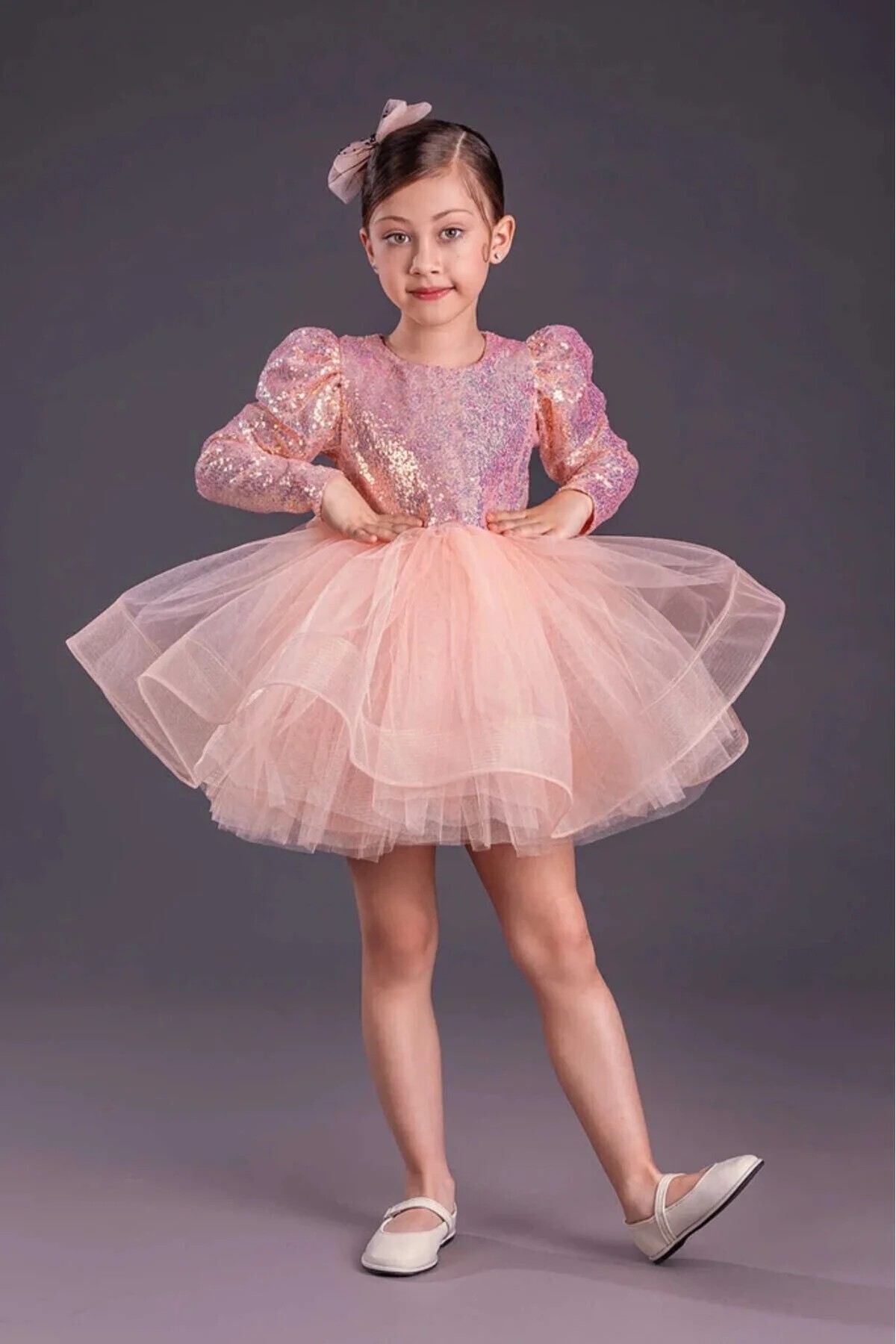Tütü Gren Etekli Kız Çocuk Pul Payetli Uzun Kol Kikidi Elbise MNK0583 SOMON Tütü Gren Etekli Kız Çocuk Pul Payetli Uzun Kol Kikidi Elbise MNK0583 SOMON 11-12 Yaş