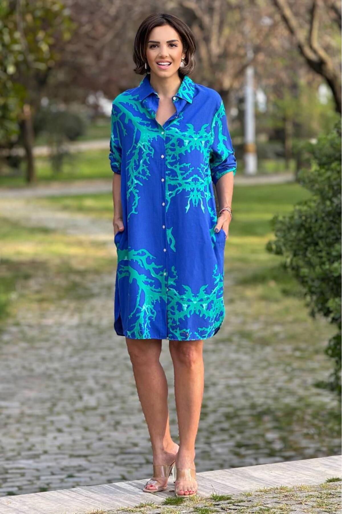 Mavi OKYANUS Desenli Midi Boy %100 Pamuk Gömlek Elbise Mavi OKYANUS Desenli Midi Boy %100 Pamuk Gömlek Elbise Midi Gömlek Elbise 40/42