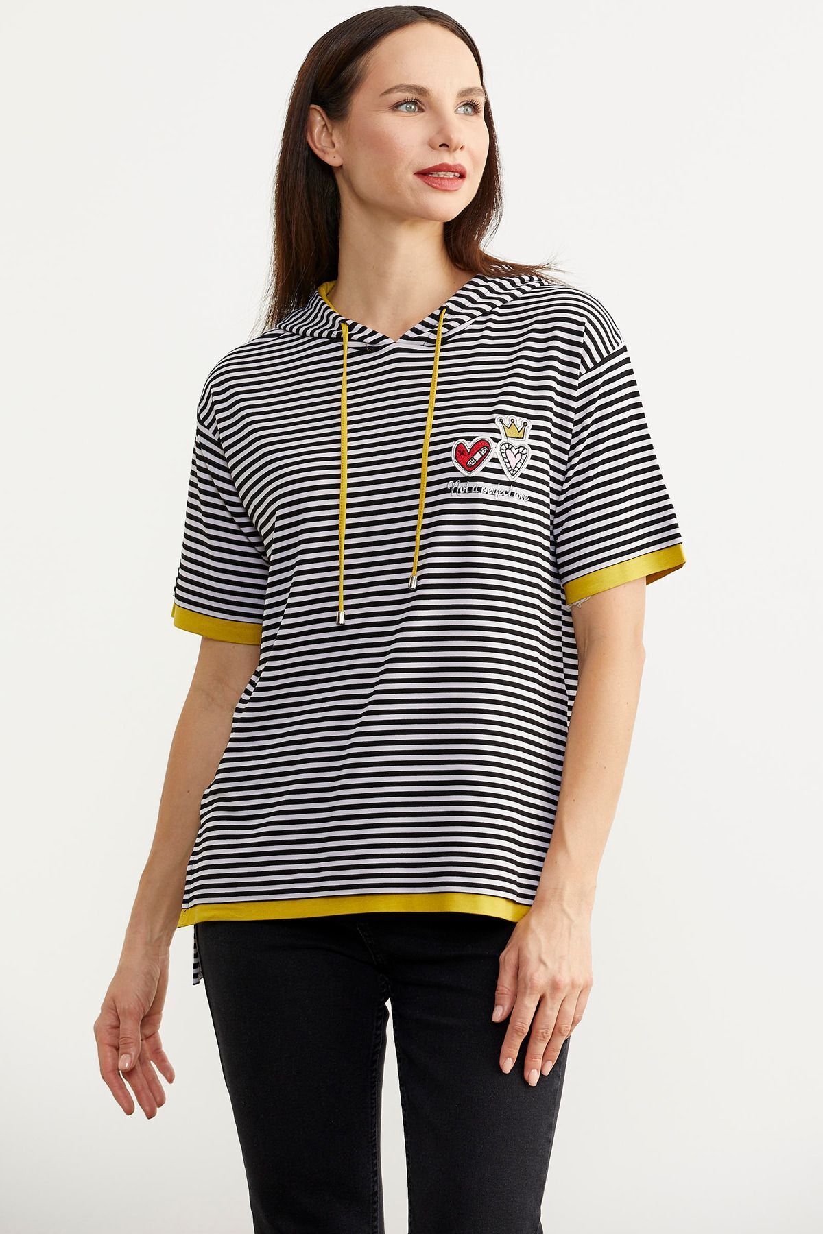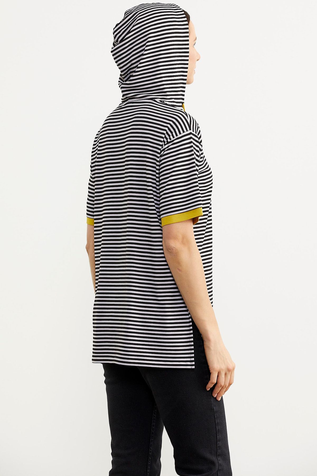 Kapüşonlu Renk Kombinli Çizgili Tişört - Siyah Kapüşonlu Renk Kombinli Çizgili Tişört - Siyah 24Y2231-75953.0001 2XL