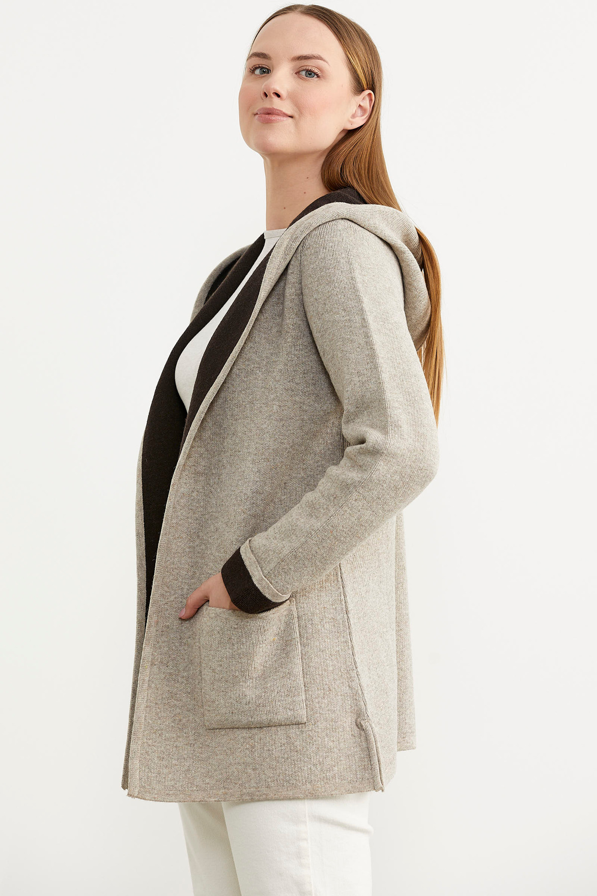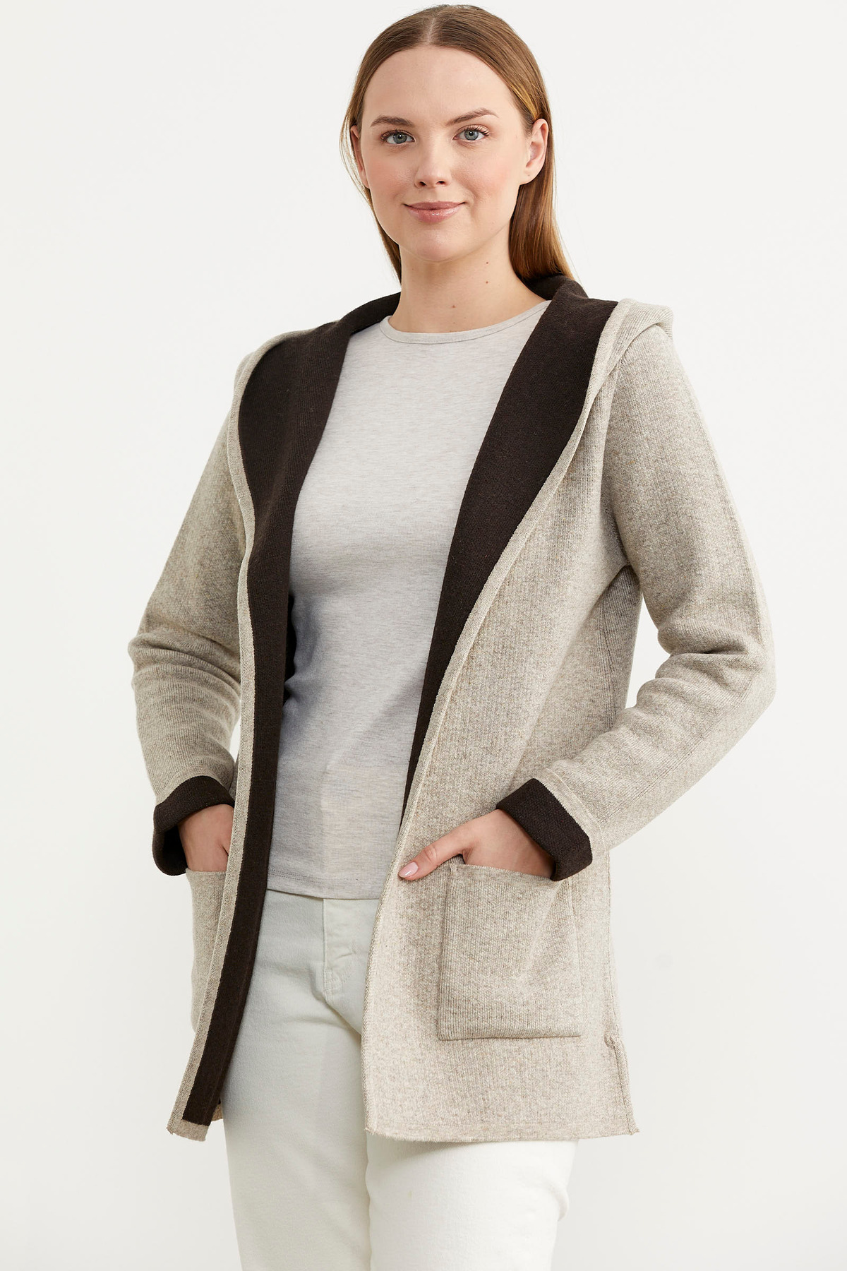 Cepli ve Kapüşonlu Yünlü Triko Ceket - Vizon - Kahverengi Cepli ve Kapüşonlu Yünlü Triko Ceket - Vizon - Kahverengi 712104-31818.1 XL