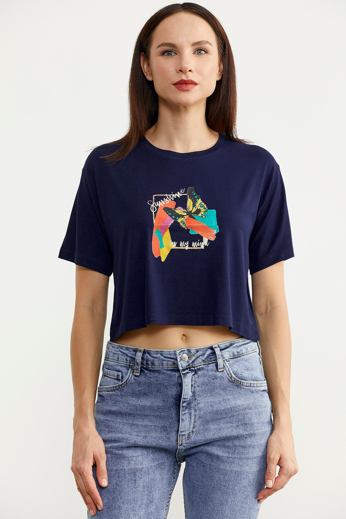 Oversize Baskılı Crop Tişört - Mercan Oversize Baskılı Crop Tişört - Mercan 24Y2231-75965.0001 2XL