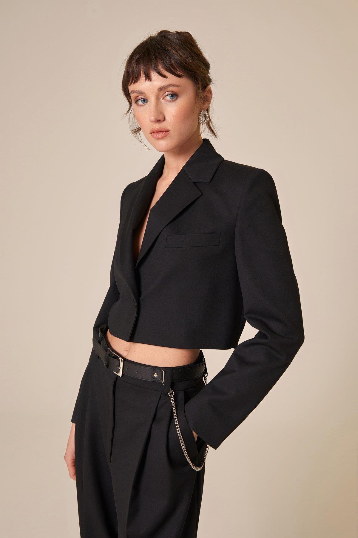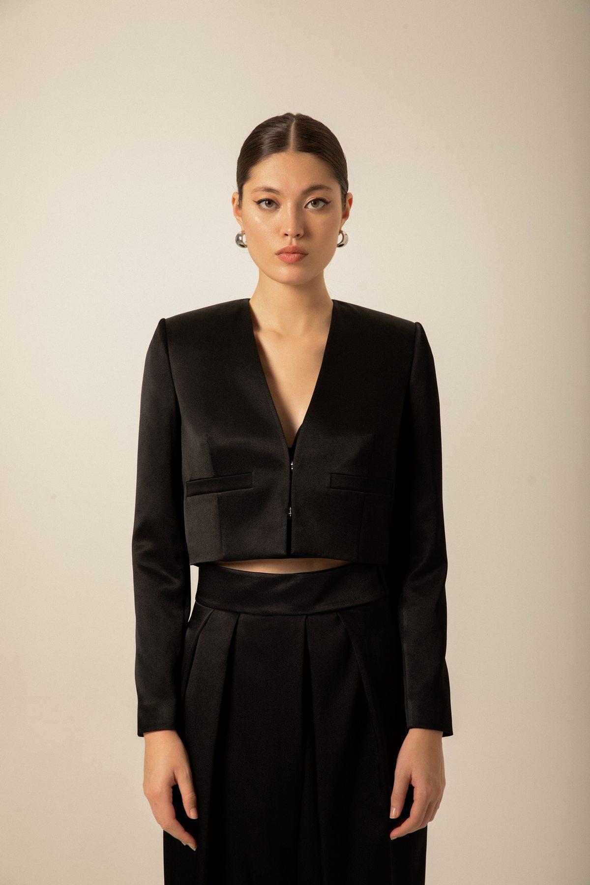 Uzun Kollu Gri Crop Ceket Uzun Kollu Gri Crop Ceket 20823135_GRIMELANJ 40