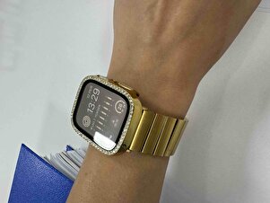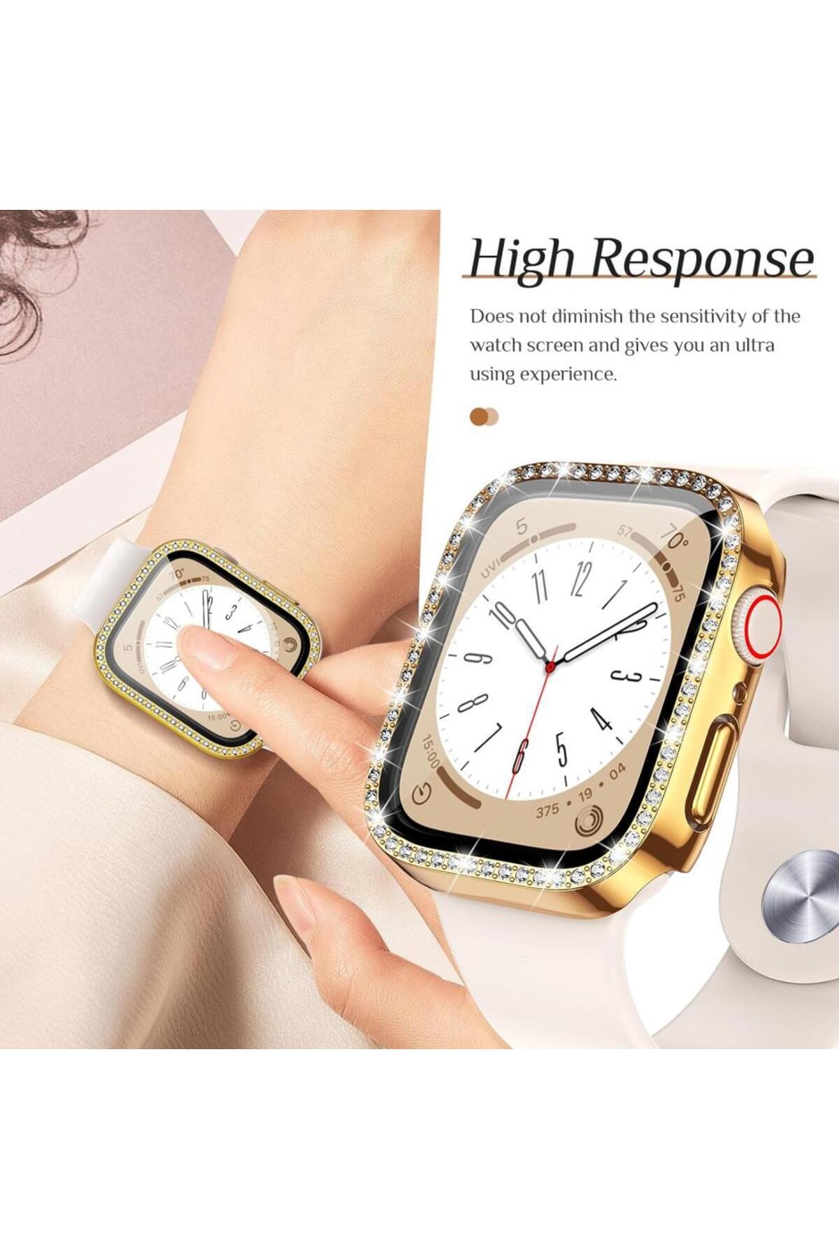 Apple Watch 7/8/9 41mm Uyumlu Ekran Koruyuculu Tek Sıra Kenar Taşlı Sert PC Kasa Koruyucu Apple Watch 7/8/9 41mm Uyumlu Ekran Koruyuculu Tek Sıra Kenar Taşlı Sert PC Kasa Koruyucu gard-teksırataşlıekranlı-41mm تک سایز
