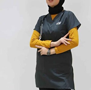 Tesettür hemşire üniforması tunik boy tek üst antrasit gri füme terikoton kumaş tek üst 85 cm etek Tesettür hemşire üniforması tunik boy tek üst antrasit gri füme terikoton kumaş tek üst 85 cm etek tunik gri L