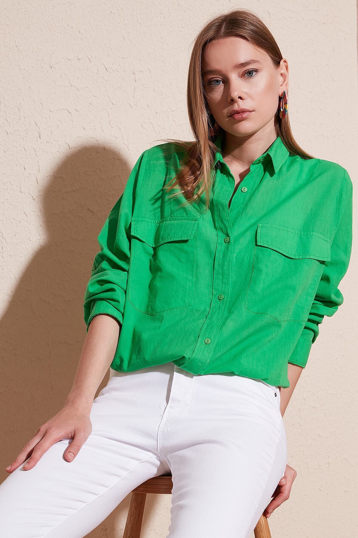 Kadın Benetton Yeşil Uzun Kollu Terikoton Özel Kumaş Cepli Spor Uzun Tunik Gömlek 3518185 Kadın Benetton Yeşil Uzun Kollu Terikoton Özel Kumaş Cepli Spor Uzun Tunik Gömlek 3518185 42