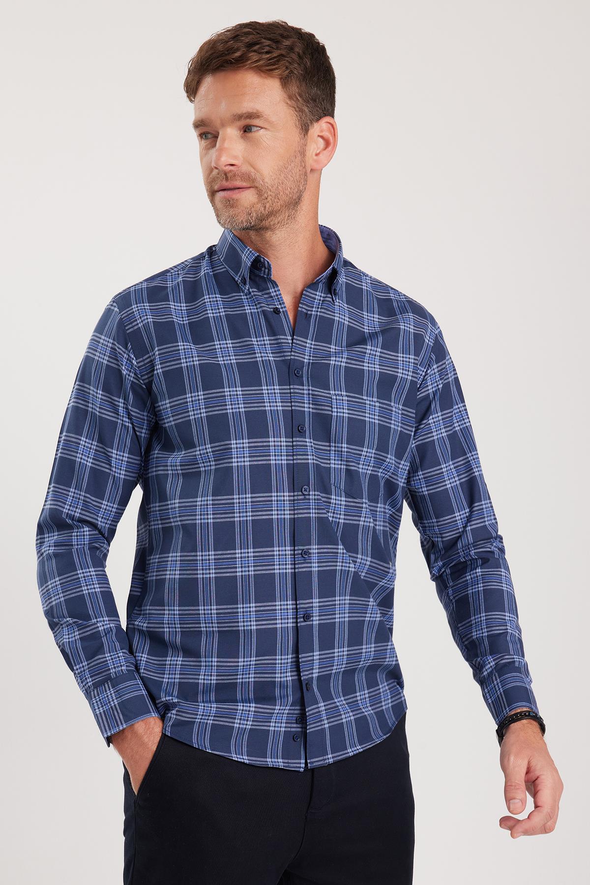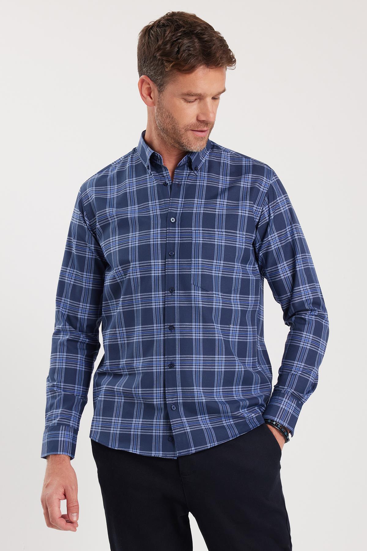 Erkek Regular Fit Klasik Kesim Pamuklu Küçük Kareli Düğmeli Yaka Gömlek Erkek Regular Fit Klasik Kesim Pamuklu Küçük Kareli Düğmeli Yaka Gömlek KL230031-670 2XL