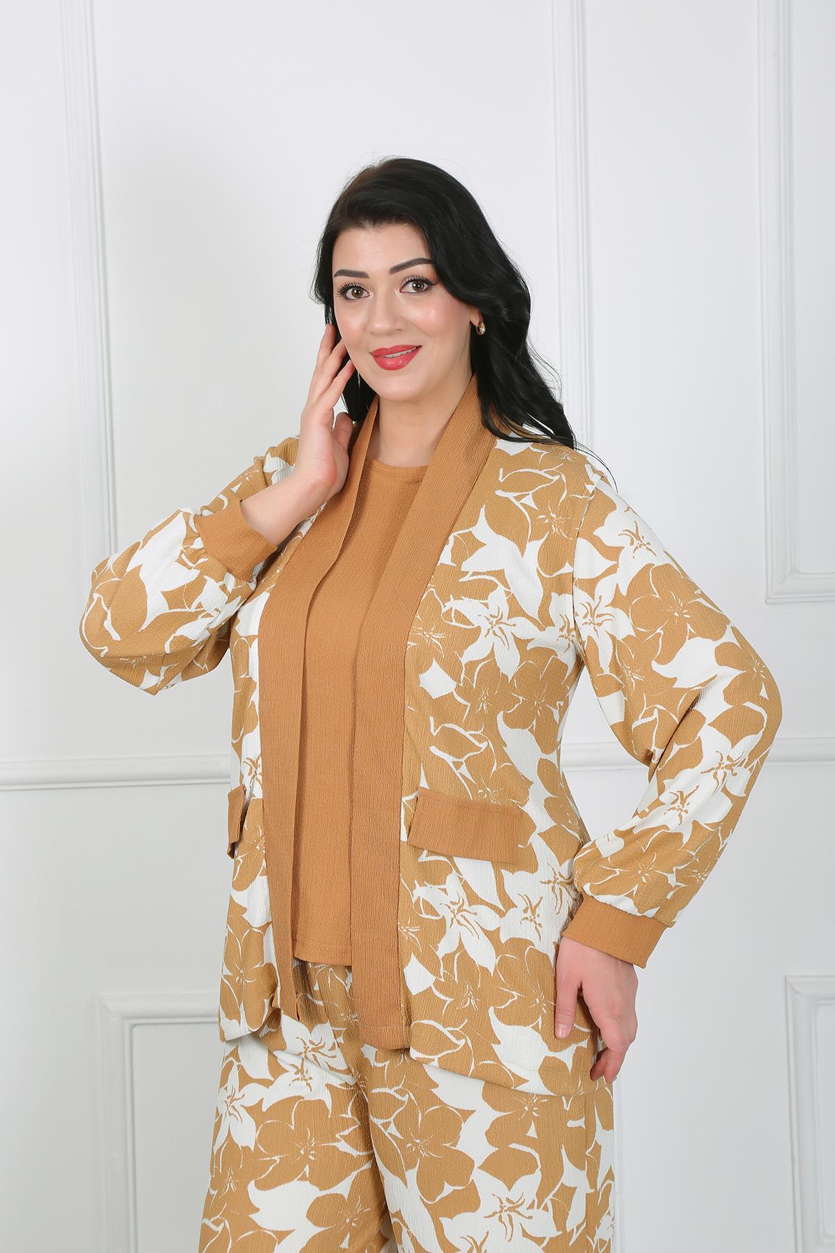 Kadın Pembe Likralı 3lü Takım Örme Bürümcük Gömlek Bluz Pantolon Kadın Pembe Likralı 3lü Takım Örme Bürümcük Gömlek Bluz Pantolon BY048-01-P 54