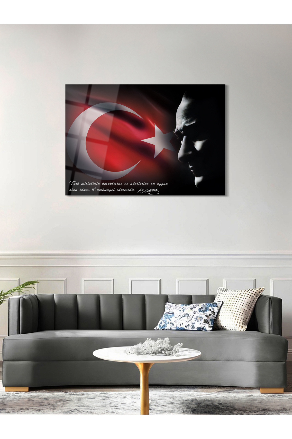 Türk Bayrağı Atatürk Cam Tablo - Cam Tablolar-Atatürk Tablo-Atatürk Portresi-Atatürk Tablosu-ATA109 Türk Bayrağı Atatürk Cam Tablo - Cam Tablolar-Atatürk Tablo-Atatürk Portresi-Atatürk Tablosu-ATA109 70 x 100