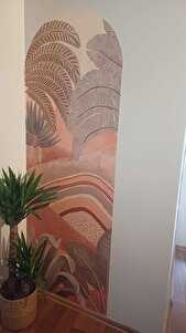 70x180 ölçülerinde aldım ürünü. 700₺ idi ücreti. Ürün güzel ve kaliteli. Yamuk kesmiş makine sanırım çünkü ortadan ikiye katladığımızda baya bir yamuktu. Yapışkanı çok çok kuvvetli, boyayı söktü çoğu yerde. Islatıp yapıştırdık. Ürünü tam konumlamaya çalışırken bir kaç kez yapıştırıp söktük o da yırtılmalara sebep oldu. Ürünün kalitesine hiçbir lafım yok fakat bizim için tam bir sabır testiydi :) bir tık daha küçük olsaydı yapıştırması kolay olabilirdi ama baya zorlandık. En sonda da fotoğrafta da görüyorsunuz baya potluklar oldu, yapışkanı da perişan oldu zaten ürünün, öylece bıraktık daha fazla zorlasak ne boya kalacaktı duvarda ne de üründe yapışkan.