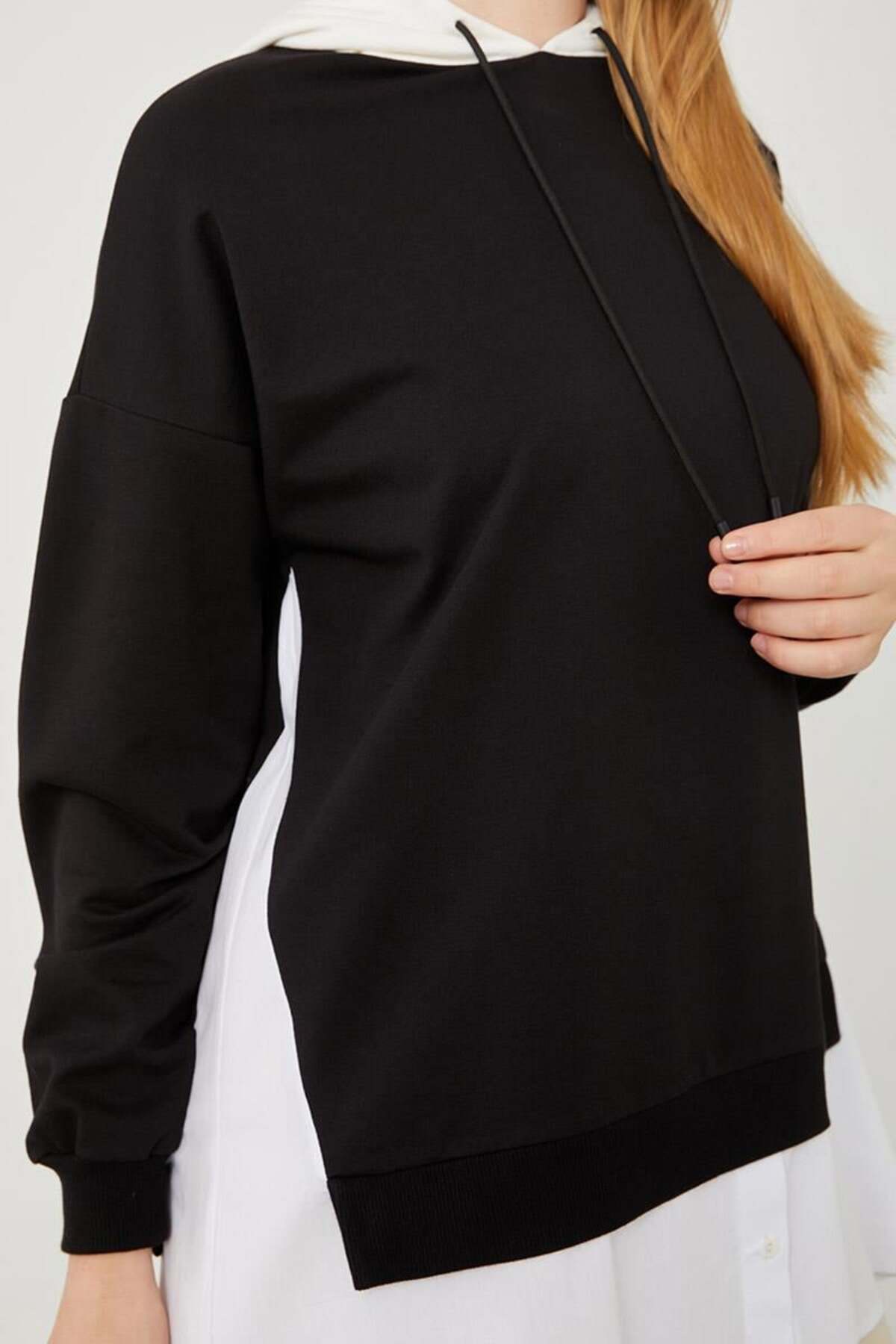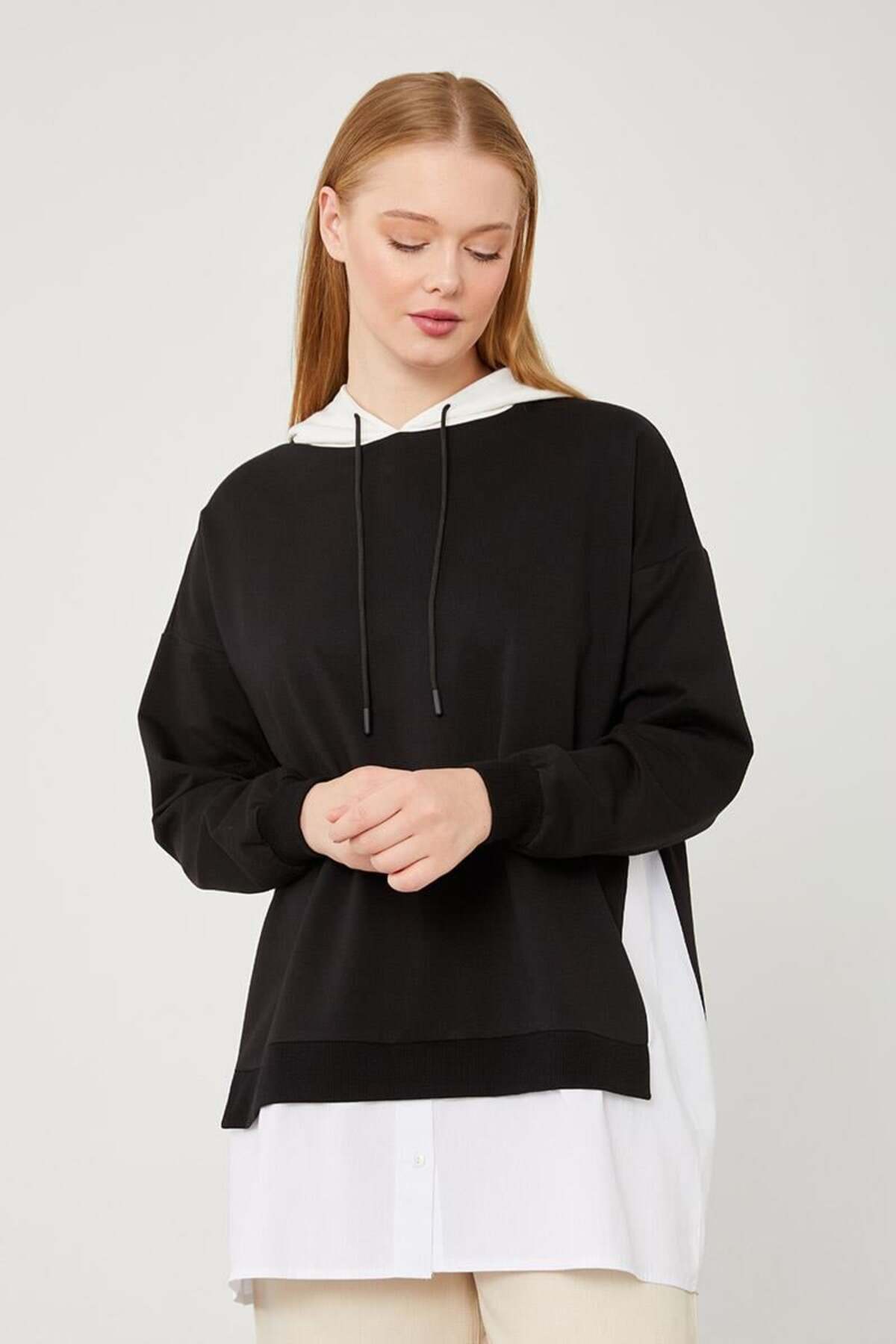 Siyah Kapuşonlu Gömlek Detaylı Sweat Siyah Kapuşonlu Gömlek Detaylı Sweat 270024 L