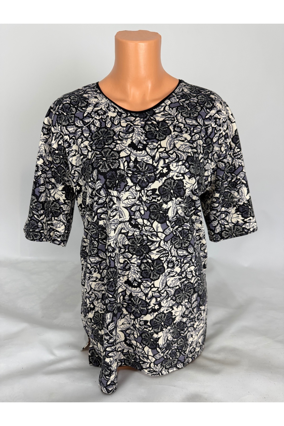 Kadın Kırmızı Desenli Bisiklet Yaka Kısa Kollu Yanları Yırtmaçlı Viskon Anne Penye Tişört Bluz Kadın Kırmızı Desenli Bisiklet Yaka Kısa Kollu Yanları Yırtmaçlı Viskon Anne Penye Tişört Bluz RLY-13009 M