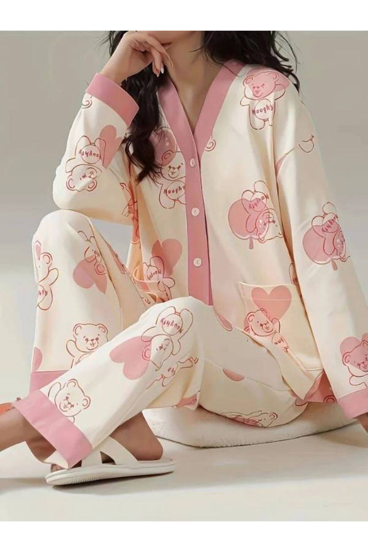 Kadın Kısa Kol Pijama Takımı CoffeeWithMilkBear Kadın Kısa Kol Pijama Takımı CoffeeWithMilkBear C-K-01 2XL
