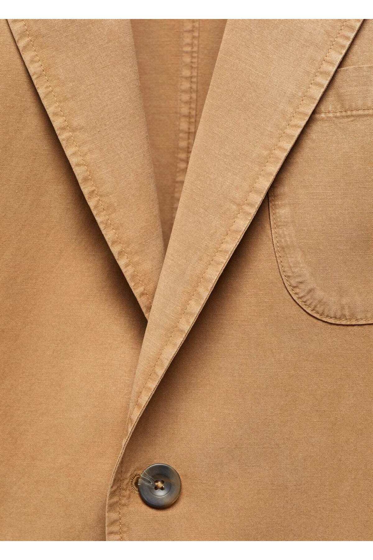 Dar kesim keten-pamuk karışımlı blazer ceket Dar kesim keten-pamuk karışımlı blazer ceket 67077696 56