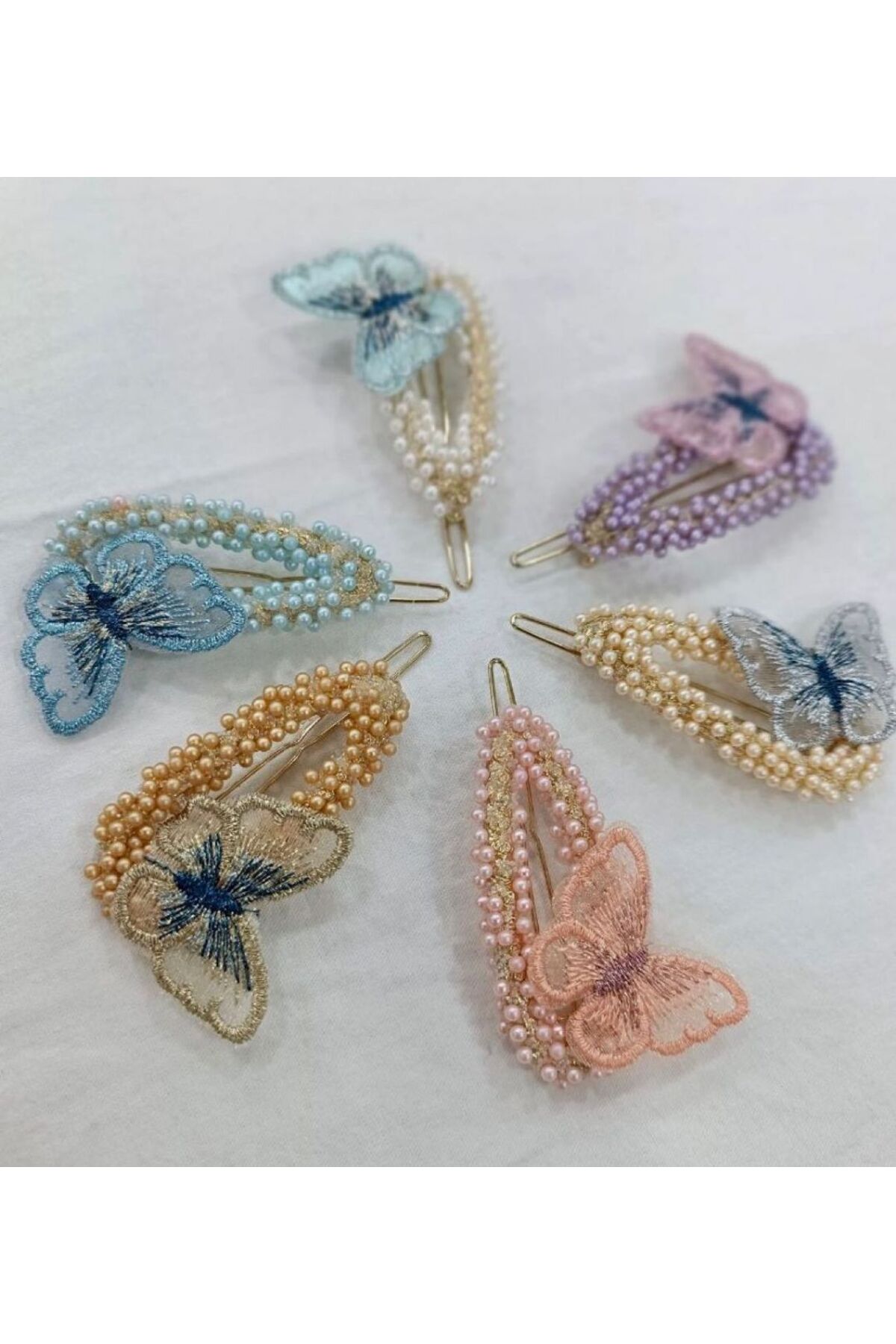 Boncuklu güpür detaylı kelebek model klipsli toka Boncuklu güpür detaylı kelebek model klipsli toka ZABGDKMKT تک سایز