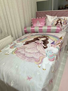 Pembe Gri Unicornlu Prenses Desenli Yatak Örtüsü ve Yastık Kılıfı Pembe Gri Unicornlu Prenses Desenli Yatak Örtüsü ve Yastık Kılıfı evortu1979 تک سایز