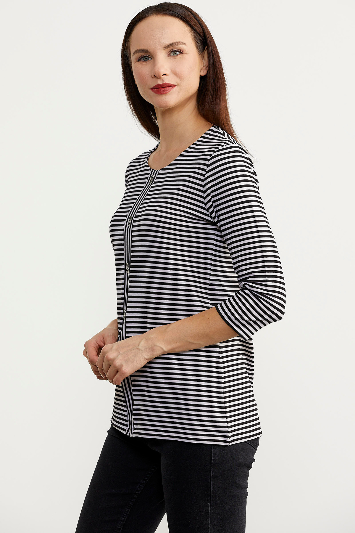 Çizgili Uzun Kol Patlı Tişört - Siyah Çizgili Uzun Kol Patlı Tişört - Siyah 24Y2231-75982.0001 2XL