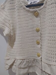 Fırfırlı Kroşe Hırka Kısa Kollu Yuvarlak Yaka Gold Düğmeli Fırfırlı Kroşe Hırka Kısa Kollu Yuvarlak Yaka Gold Düğmeli 4SAL90011IK L