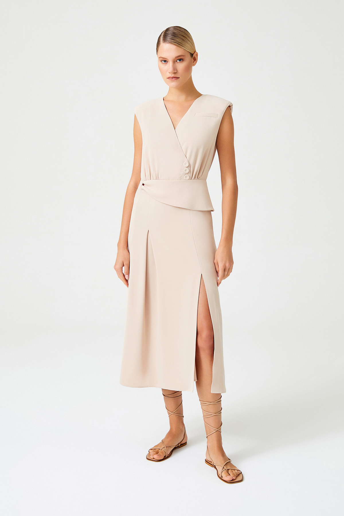 Bej Önü Yırtmaçlı Kolsuz Midi Boy Elbise Bej Önü Yırtmaçlı Kolsuz Midi Boy Elbise M24YJP054023_JB8 40