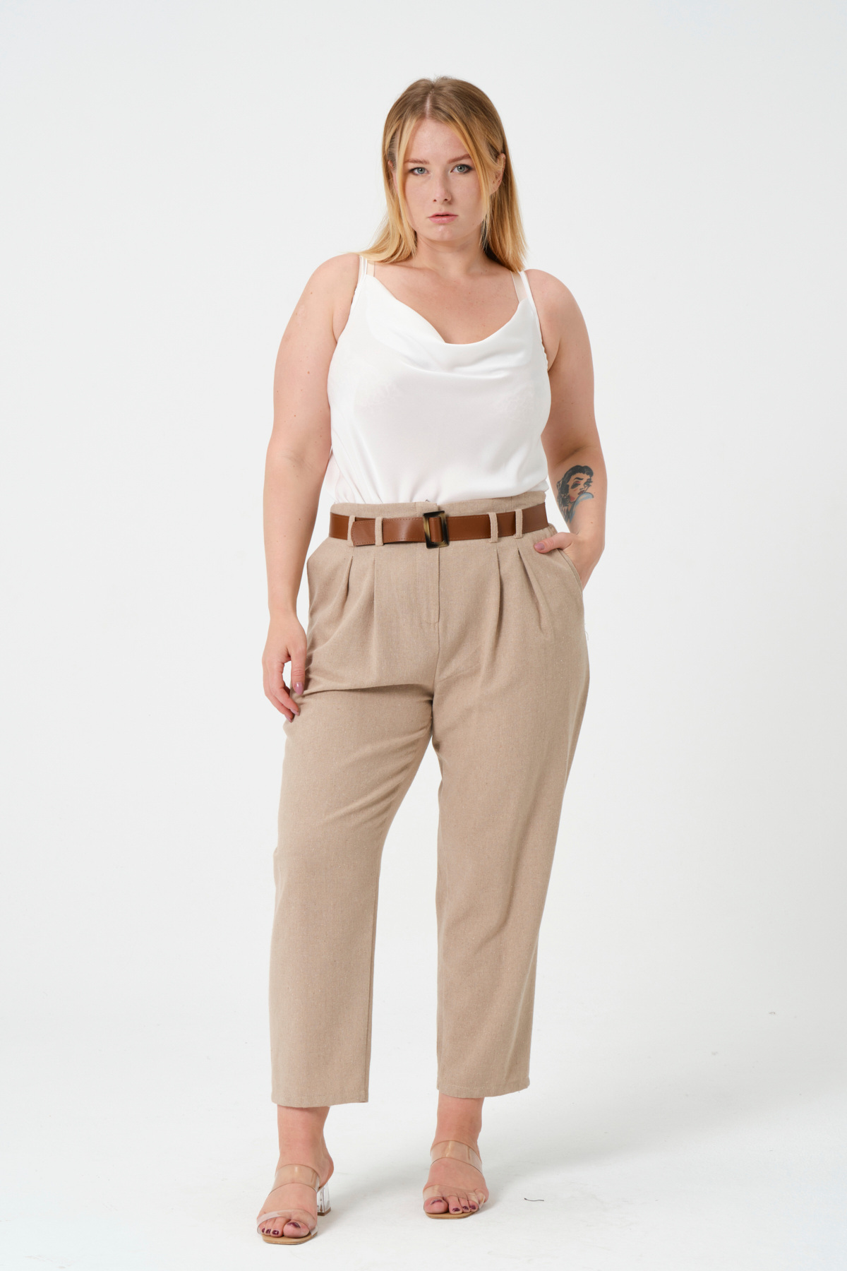 Büyük Beden Kemerli Keten Pantolon Büyük Beden Kemerli Keten Pantolon SHQ-40522 50