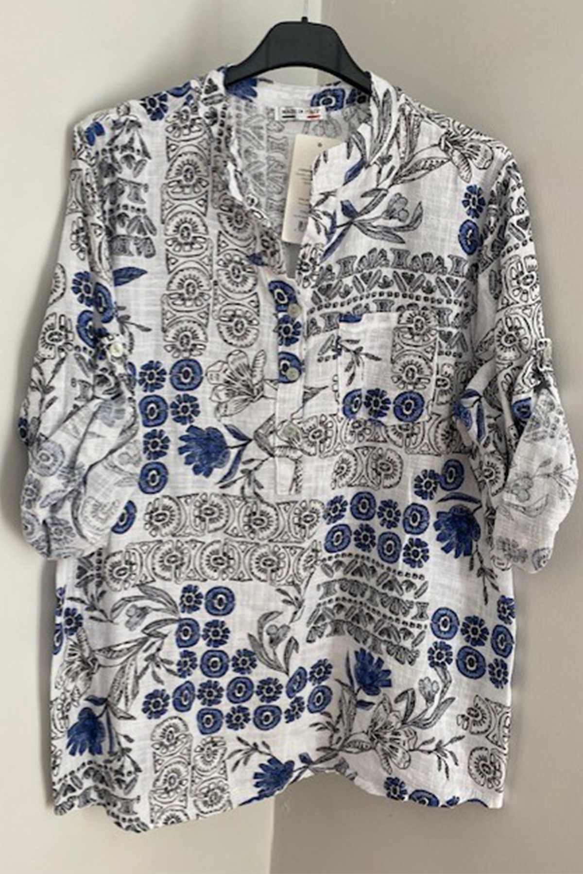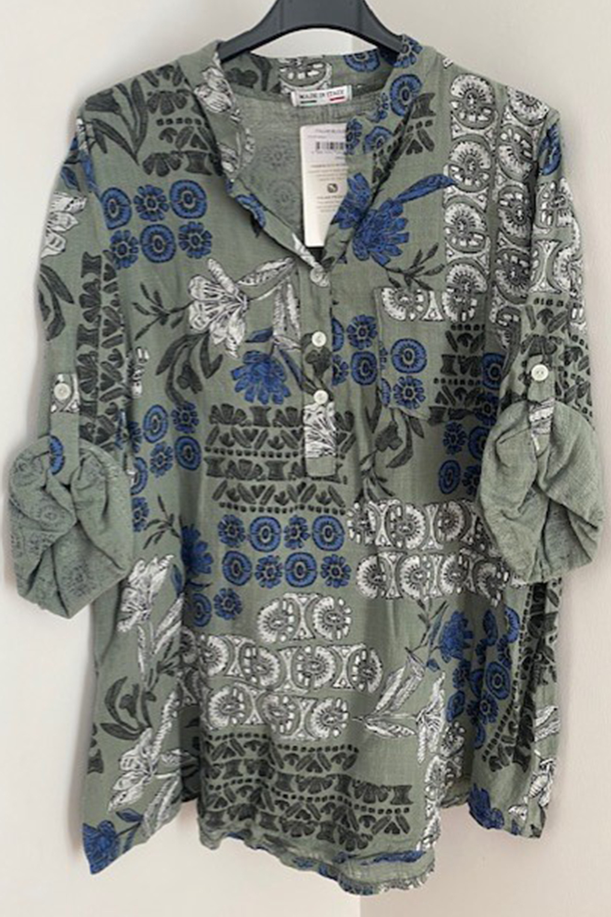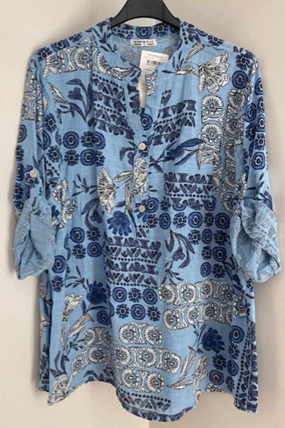 Kadın İtalyan Turkuaz Düğmeli Patlı Yakalı Cepli Etnik Çicek Desenli Katlanabilen Yetim Kollu Bluz Kadın İtalyan Turkuaz Düğmeli Patlı Yakalı Cepli Etnik Çicek Desenli Katlanabilen Yetim Kollu Bluz 24025910A-ITALYAN Standart