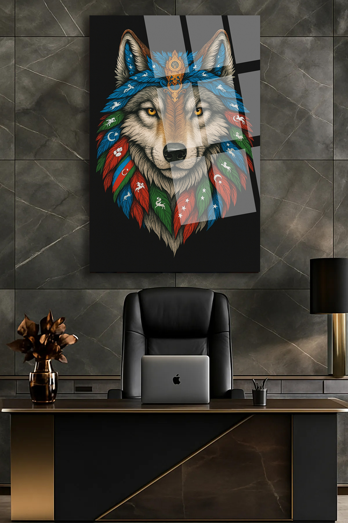 Türk Bayrağı Detaylı Keskin Bakışlı Beyaz Kurt Kanvas Tablo Türk Bayrağı Detaylı Keskin Bakışlı Beyaz Kurt Kanvas Tablo KNVSTBLO261 100 x 150