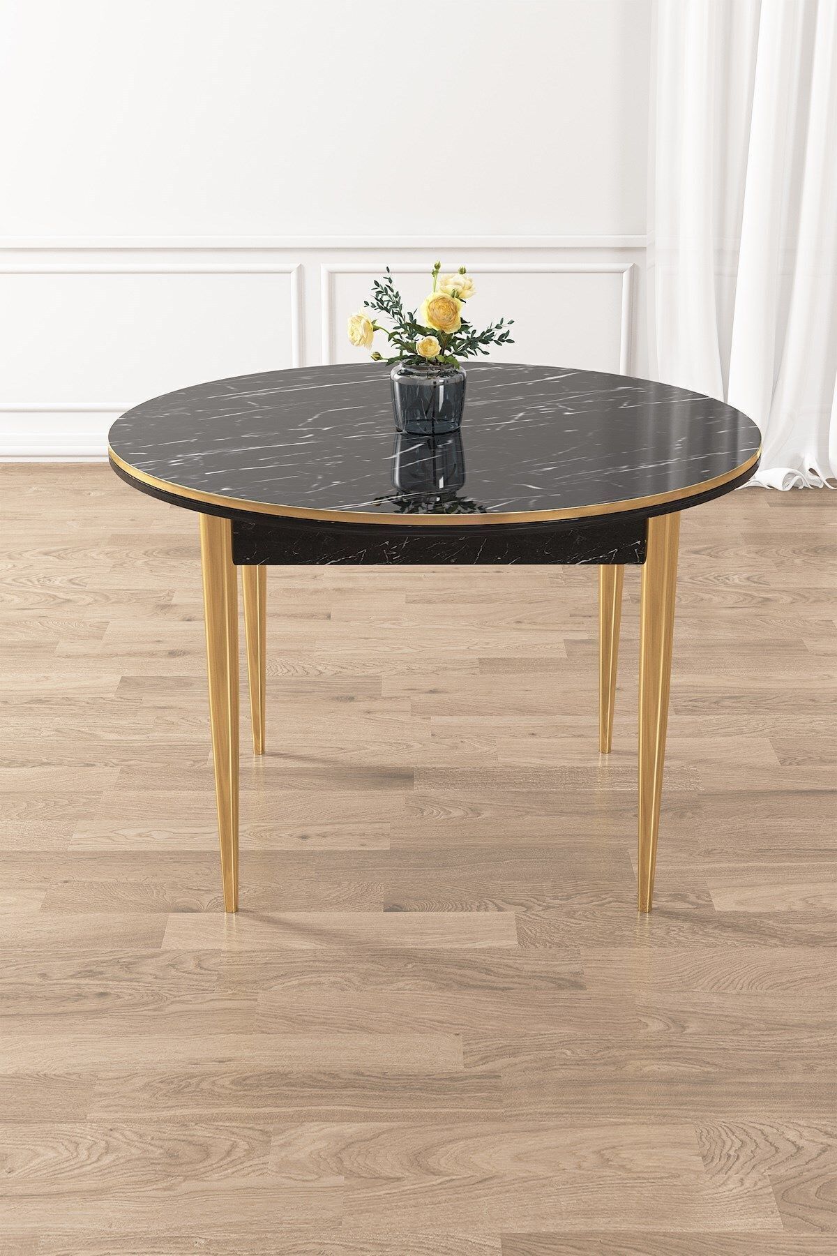 Osle Serisi 90x90 Yuvarlak Siyah Mermer Desen Mutfak Masa Takımı 4 Sandalye Gold Detay Osle Serisi 90x90 Yuvarlak Siyah Mermer Desen Mutfak Masa Takımı 4 Sandalye Gold Detay 22OSLE04SYHMR04GLD تک سایز